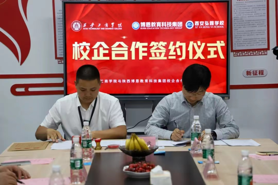 5月7日下午,西安工商学院副校长程波,教务处副处长辛大欣,人文学院党总支副书记、副院长原朝阳,产教融合与实践教学中心主任张欢生,人文学院中文系教师郭子嫣,新闻传播系教师李雨桐,产教融合与实践教学中心实验员苗力元一行7人,前往陕西博恩教育科技集团有限公司进行走访调研,并举行了签约授牌仪式。此次合作旨在深化教育教学改革,提高人才培养质量,助力学生全面发展,助推学生高质量就业。