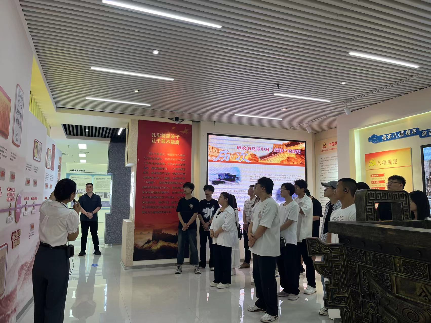 为扎实开展好党纪学习教育,进一步增强党员对党章党规党纪的认知水平和敬畏意识,筑牢拒腐防变的提坝,教育引导广大党员学纪、知纪、明纪、守纪,搞清楚党的纪律规矩是什么,弄明白能干什么、不能干什么,坚定信仰信念、严守纪律规矩、改进工作作风,知敬畏、存戒惧、守底线。2024年5月8日下午,机电工程学院学生第三党支部组织全体师生党员及学院第九期发展对象到高陵区廉政教育基地开展“学党纪强党性,争当模范党员”主题党日活动。