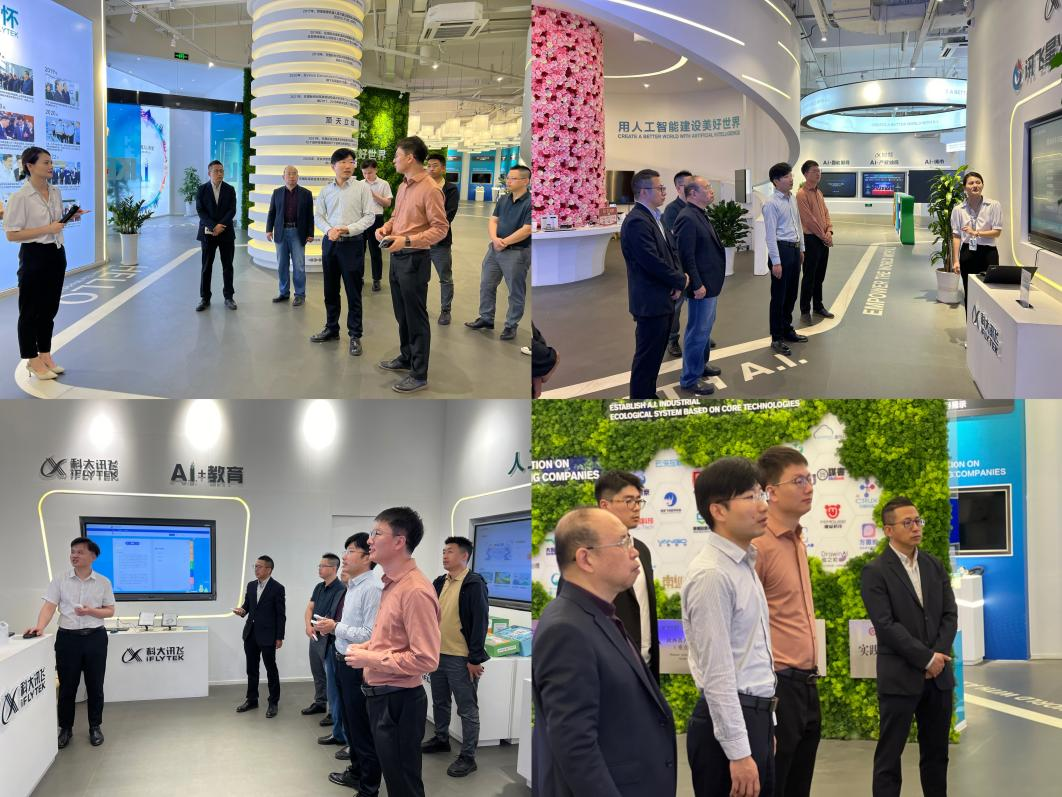 双方座谈前,在科大讯飞丝路总部高教行业总监焦永禄等领导的陪同下,我校参访团队参观科大讯飞的人工智能科技成果展厅。深入了解了科大讯飞在语音识别、人机语音交互、智慧办公、智慧教育和智慧医疗等前沿领域的科技成果,还通过展厅内的智能产品演示和实践互动,深刻体验了科大讯飞在智能硬件、语音云、教育、医疗等行业的前沿应用与研究。