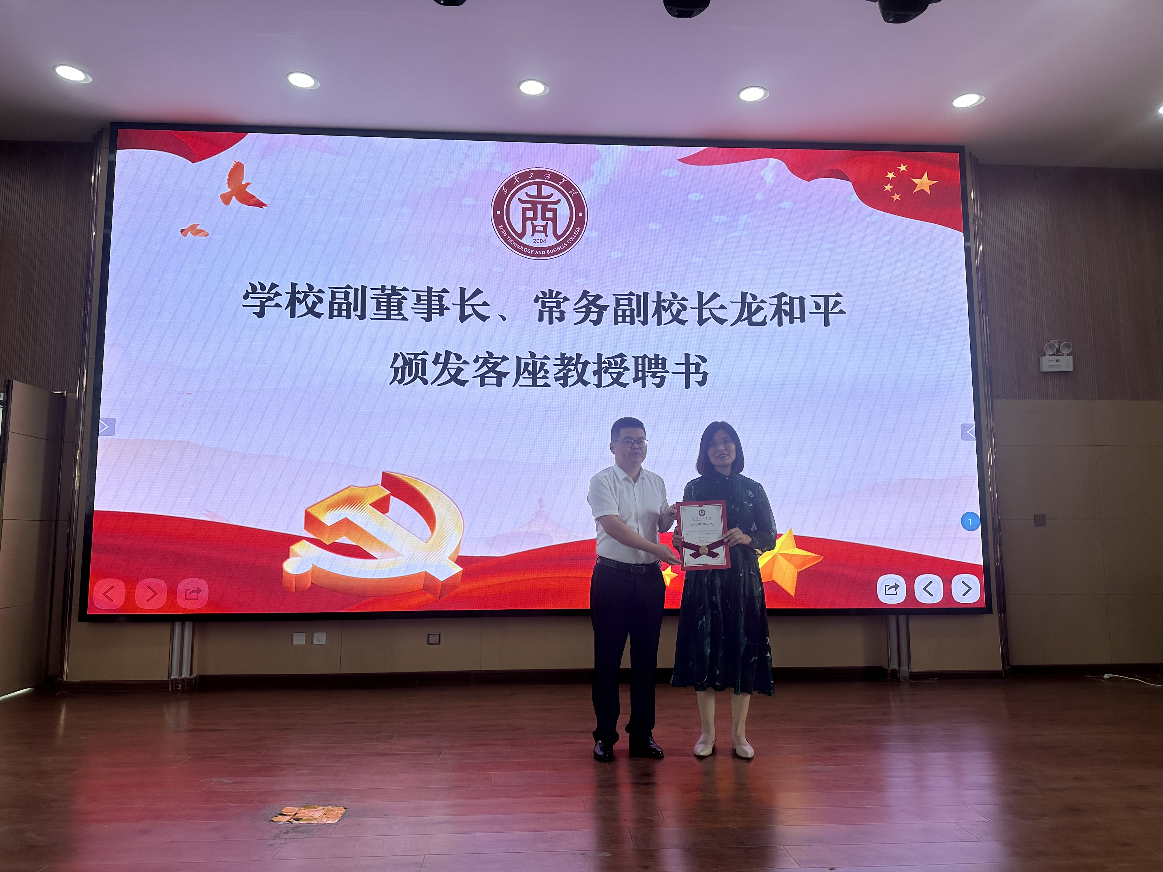 首先,由学校副董事长、常务副校长龙和平颁发客座教授聘书。