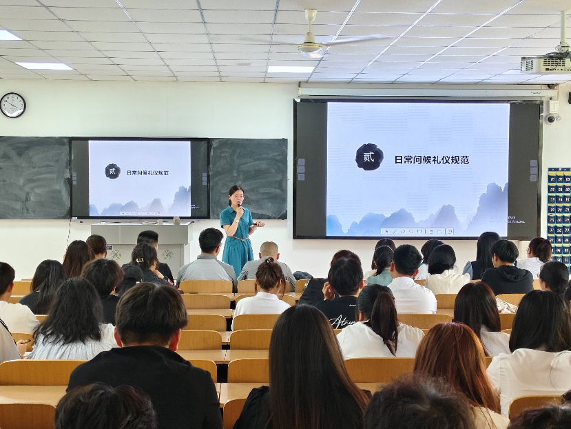 接着,范院长围绕夏日着装、日常问候、网络文明和文明公约等方面结合相关典型视频和典型案例展开具体的培训。她强调,作为在校大学生,夏日着装要得体大方,轻便整洁;日常问候要真诚热情,尊重他人,体现人文关怀;在网络空间中,要保持文明用语,避免发表不当言论,营造良好的网络氛围。