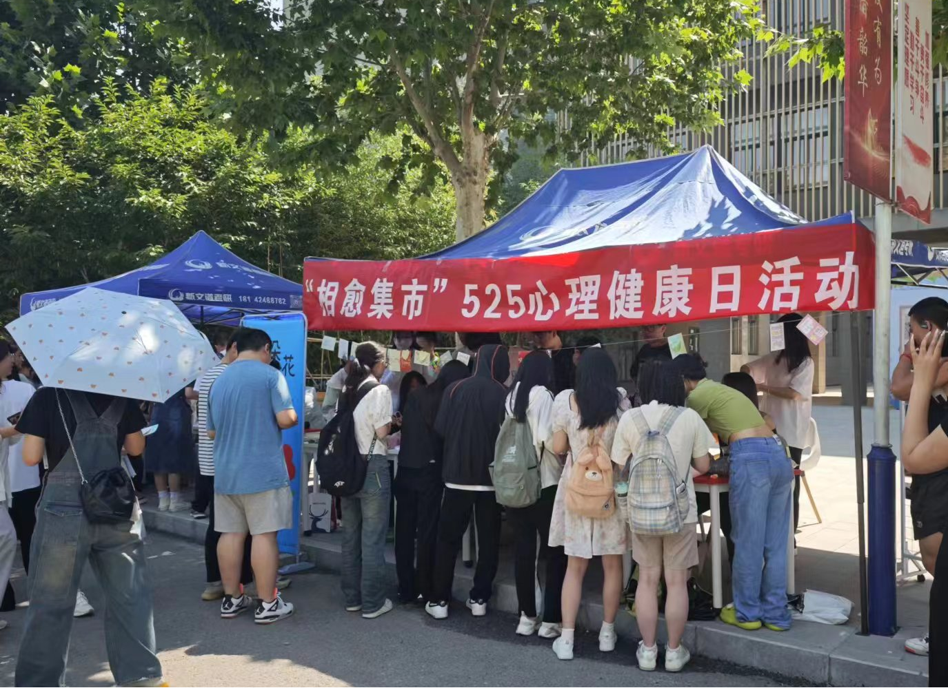 活动现场,阳光明媚,同学们热情高涨。整个游园会由情绪交换站、DIY工作坊、心随影动、用心沟通摄影展三部分组成,每个区域都吸引了大量学生驻足参与。