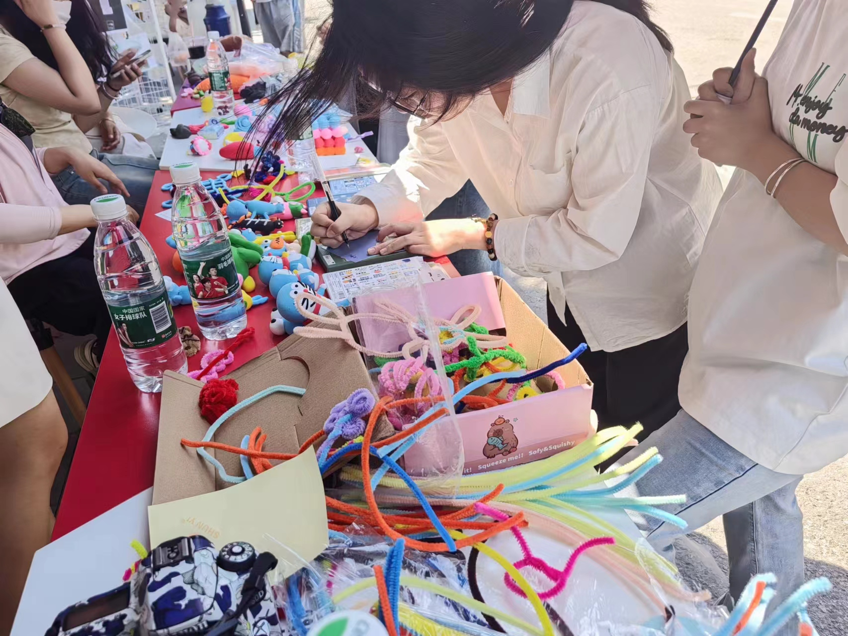 在情绪交换站,同学们通过便利贴留言进行心灵对话,分享自己的喜怒哀乐,倾听他人的心声。DIY工作坊则是一个创意与乐趣并存的空间。同学们利用提供的超轻粘土和扭扭棒,在制作过程中,锻炼动手能力,学会如何静心思考,感受创作的乐趣。