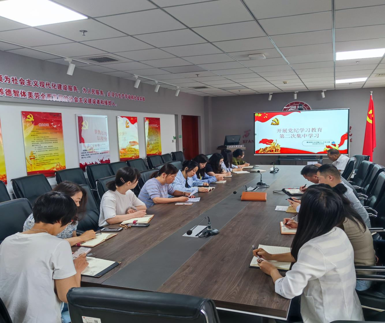 为深入学习贯彻习近平总书记关于党纪学习教育的重要讲话和重要指示精神。落实机关党总支的工作要求,5月29日上午,教务图文乡村振兴人才党支部在图书馆党建会议室组织全体党员深入学习了新修订的《中国共产党纪律处分条例》第一编内容总则。这次学习不仅是对党员们党性修养的一次提升,更是对党的纪律建设的一次重要推进。