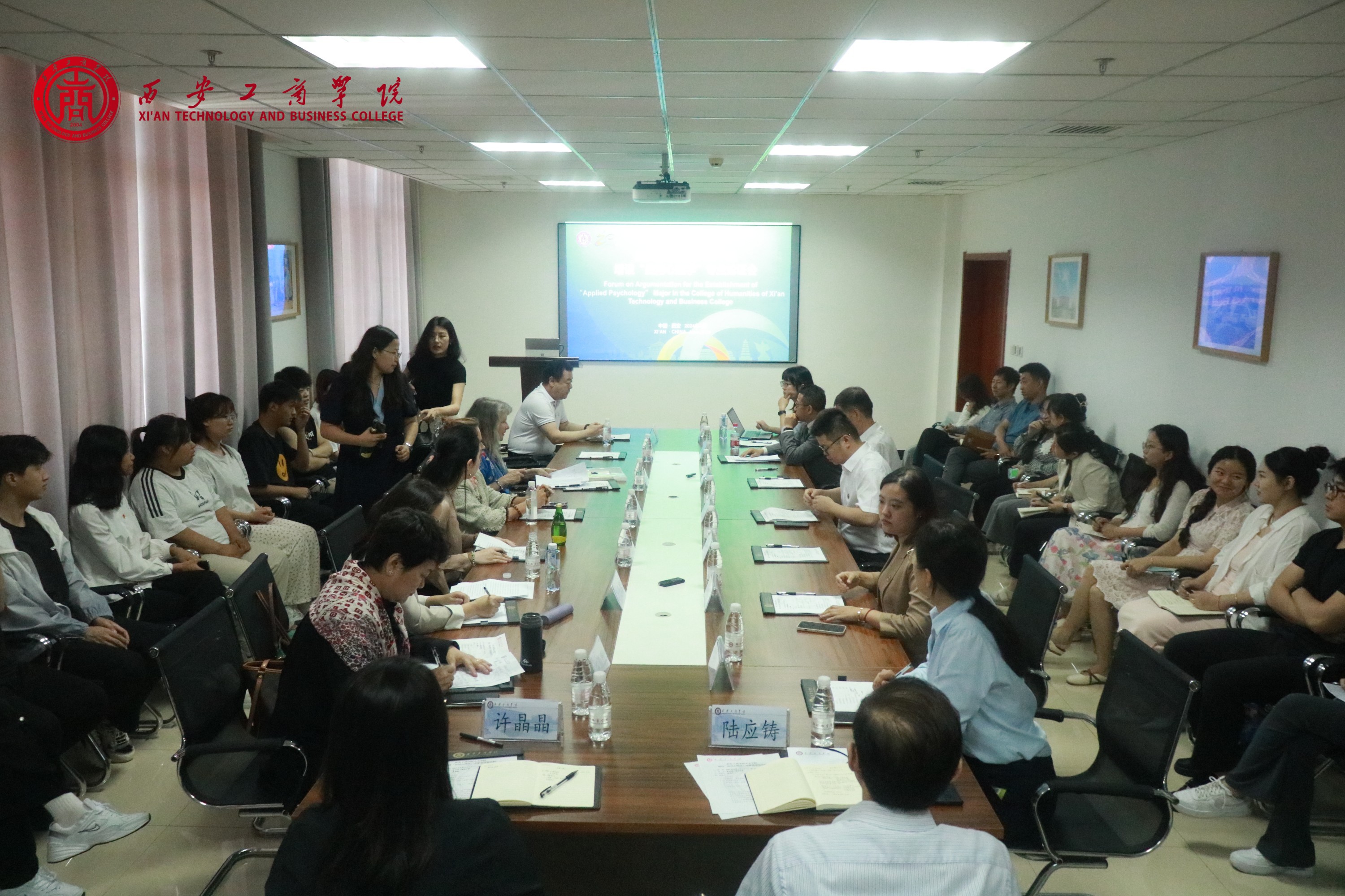 陕西师范大学心理学院副研究员、硕士生导师李丹黎、西安市精神卫生中心心身医学科主任李贵斌,陕西省心理健康教育研究会副会长汤颖红等专家针对专业申报的有关问题以及实验室建设等问题提出了诸多宝贵建议。李丹黎教授建议我校的应用心理学可与工商管理和心理健康教育结合,心理实验室建设要在做好行为实验、观察类实验室建设的基础上重视应用心理学的交叉研究。李贵斌主任指出,当前社会越来越来越重视心理健康和心理维护,申报应用心理学专业是有前途的。专业的课程设计要重视分层设计、细化设计,结合各行业的需求,找准人才培养的落脚点。