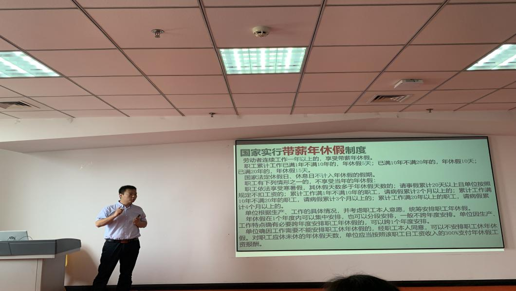 随后,高陵区劳动人事争议仲裁院仲裁员徐少川以“劳有所得,踏稳入职第一步”为主题,围绕“入职前我要注意什么、入职后我有哪些权力和义务及发动劳动纠纷我该怎么办”进行讲解,徐仲裁员以身边发生的案例为切入点,深入浅出的在讲述了在求职中如何读懂劳动合同中规定的条款等问题,如何在合同中争取自己的权益、规避纠纷风险等。