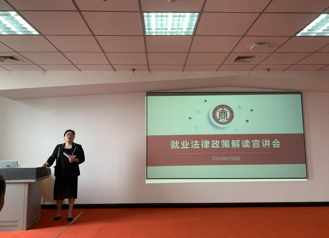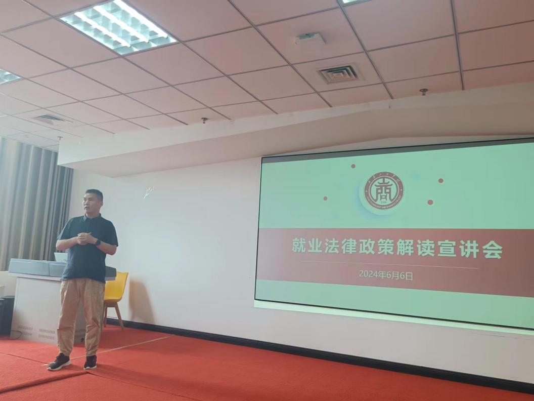 为增强大学生的法律知识和风险意识、护航大学生走好就业路、助力大学生高质量就业,6月6日上午,校人事处、大学生就业指导服务中心联合高陵区劳动人事争议仲裁院、高陵区劳动监察大队举办“就业法律政策解读宣讲会”。高陵区劳动人事争议仲裁院院长王朵、西安工商学院创新创学院院长伍建文、人事处、就业中心、2024届毕业班辅导员及2024届毕业生代表参加了此次宣讲会,会议由孙艳梅老师主持。