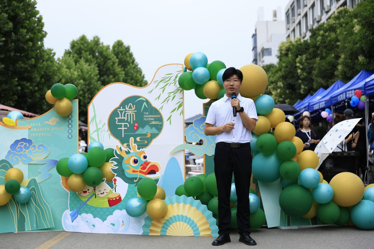 副校长程波宣布第七届美食节正式开始并致辞,他希望通过此次活动,增强同学们弘扬传统文化,传承端午习俗的意识,并号召同学们发扬节约粮食、勤俭节约的传统美德。
