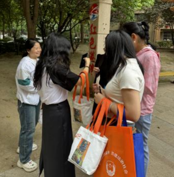 同时,志愿者们向社区居民介绍端午节的重要习俗与相关作品,与社区工作人员、社区居民和环卫工人积极互动,送上祝福。让社区居民亲身参与到端午节的传统习俗中,无形中加深了对中华优秀传统文化的理解,能够更直观地感受到传统文化的魅力,进而促进传统文化的传承与弘扬。