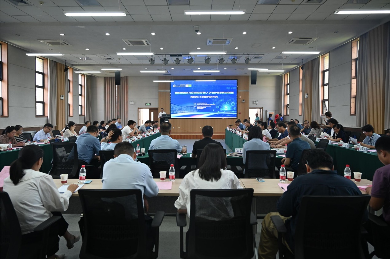 6月5日下午,“面向智能化应用的经管人才培养转型与学科建设创新”——第二十届陕西省高校经管学院院长论坛在陕西师范大学长安校区举办。本次论坛由陕西省经管学院院长联席会、陕西经济学学会及陕西师范大学国际商学院共同主办。来自陕西省31所高校的51名经管学院院长参与了本次论坛,我校经济与管理学院院长助理郭鹏受邀参会,与来自各高校与会代表深入交流,共同探讨和应对教育领域的智能化转型,分享智能化技术融入经管教育与人才培养经验。