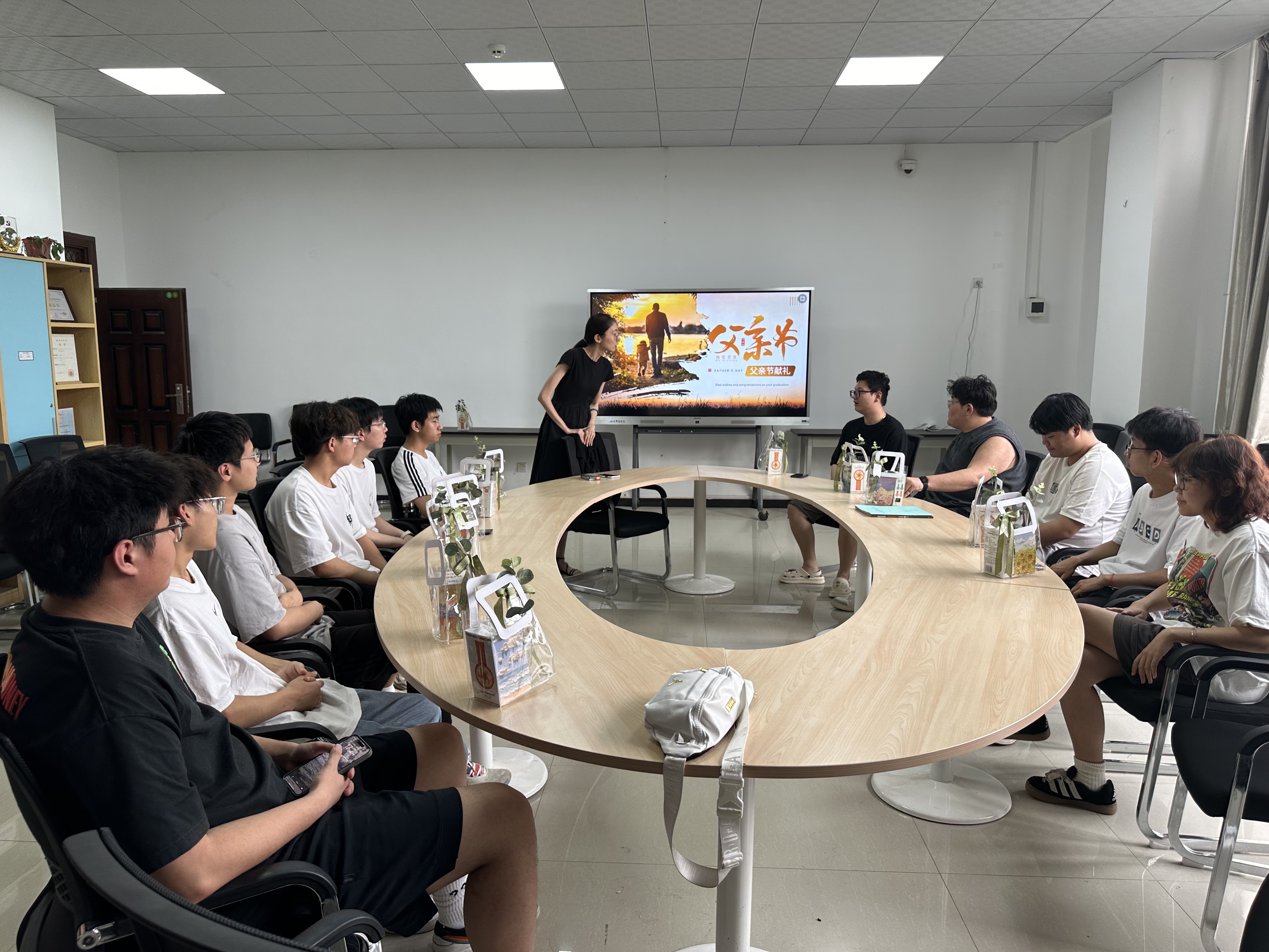 活动于父亲节前夕在学校实验楼301教室举行。信息工程学院的领导、教师代表以及卓越班的全体同学共同参与了此次活动。活动伊始,主持人向同学们介绍了父亲节的由来和意义,强调了父爱如山的重要性,并鼓励同学们用实际行动表达对父亲的感恩与关爱。