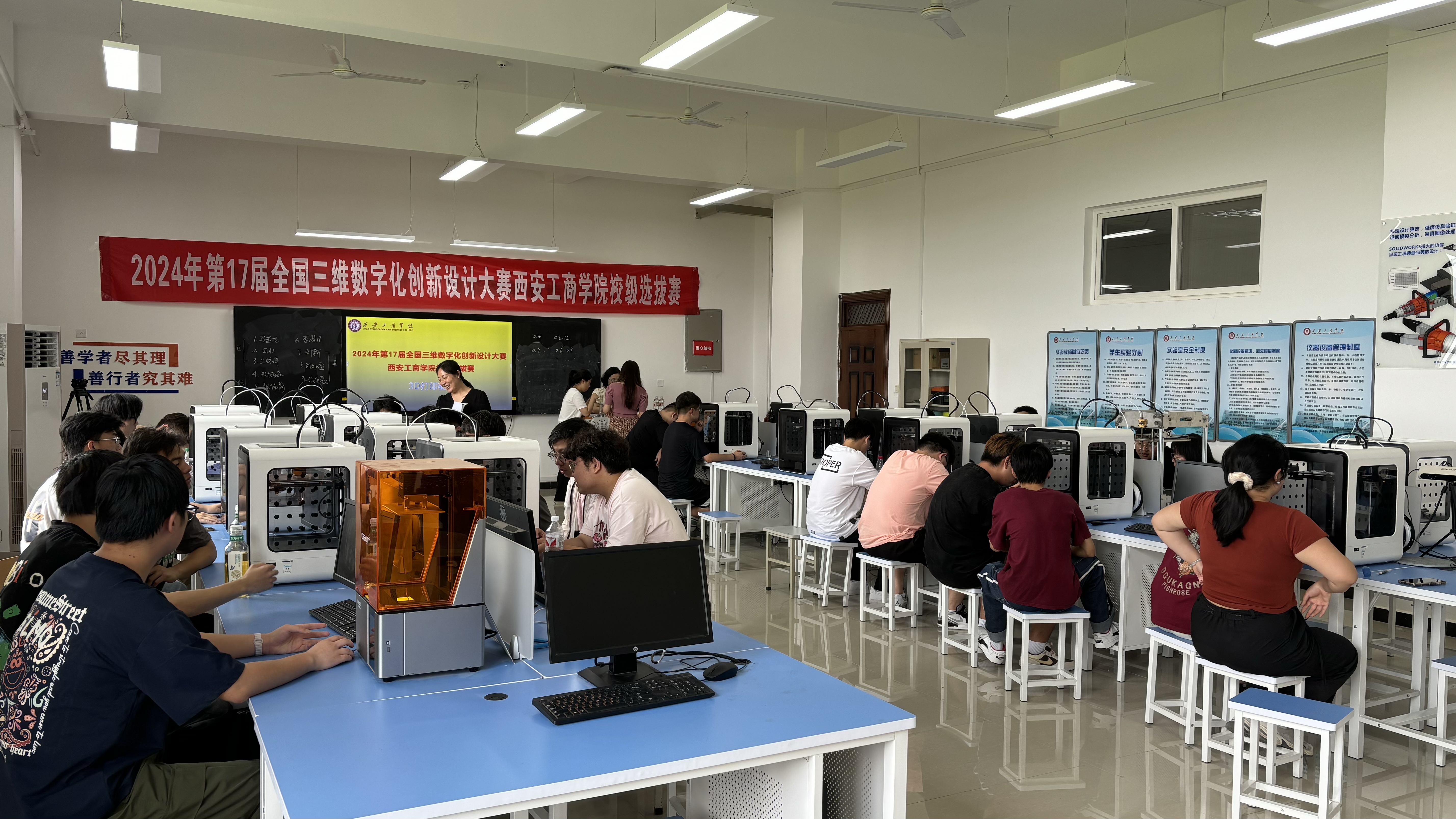 2024年6月20日,第17届全国三维数字化创新设计大赛3D打印创新设计赛项在西安工商学院实验楼举办。本次大赛吸引了来自不同专业的26组的76名学生参加比赛。经过5.5小时的激烈角逐,评审组最终评选出一等奖1名,二等奖4名,三等奖5名。