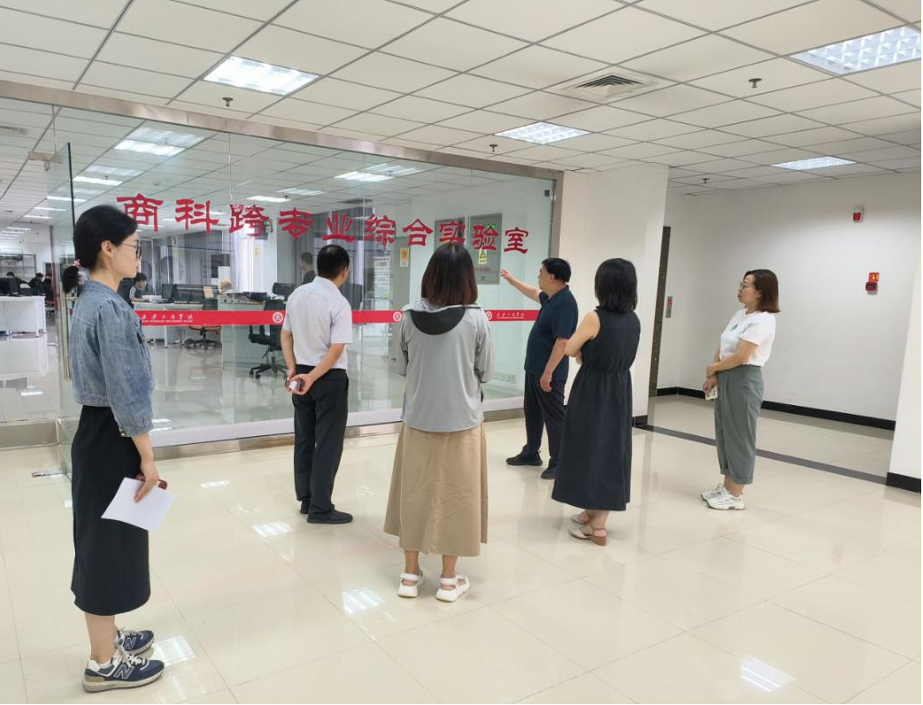 张子林院长基于学校培养应用型本科人才的定位,围绕经济管理学院新商科实践体系建设——大经管生态圈实训基地在课程体系改革、专业课程群建设、人才培养方案的修订、师资队伍建设、教学方法的改革、课程内容更新、学生能力等方面作了深入交流。张院长在我校经管院院长助理、各系主任带领下参观了我院商科跨专业综合实验室。我院实验室积极与其他学科领域合作,开展交叉学科的实验项目,得到了张院长的高度认可,并提议开发更多与市场趋势相结合的创新实验课程,以增强学生的实际操作能力和解决实际问题的能力。