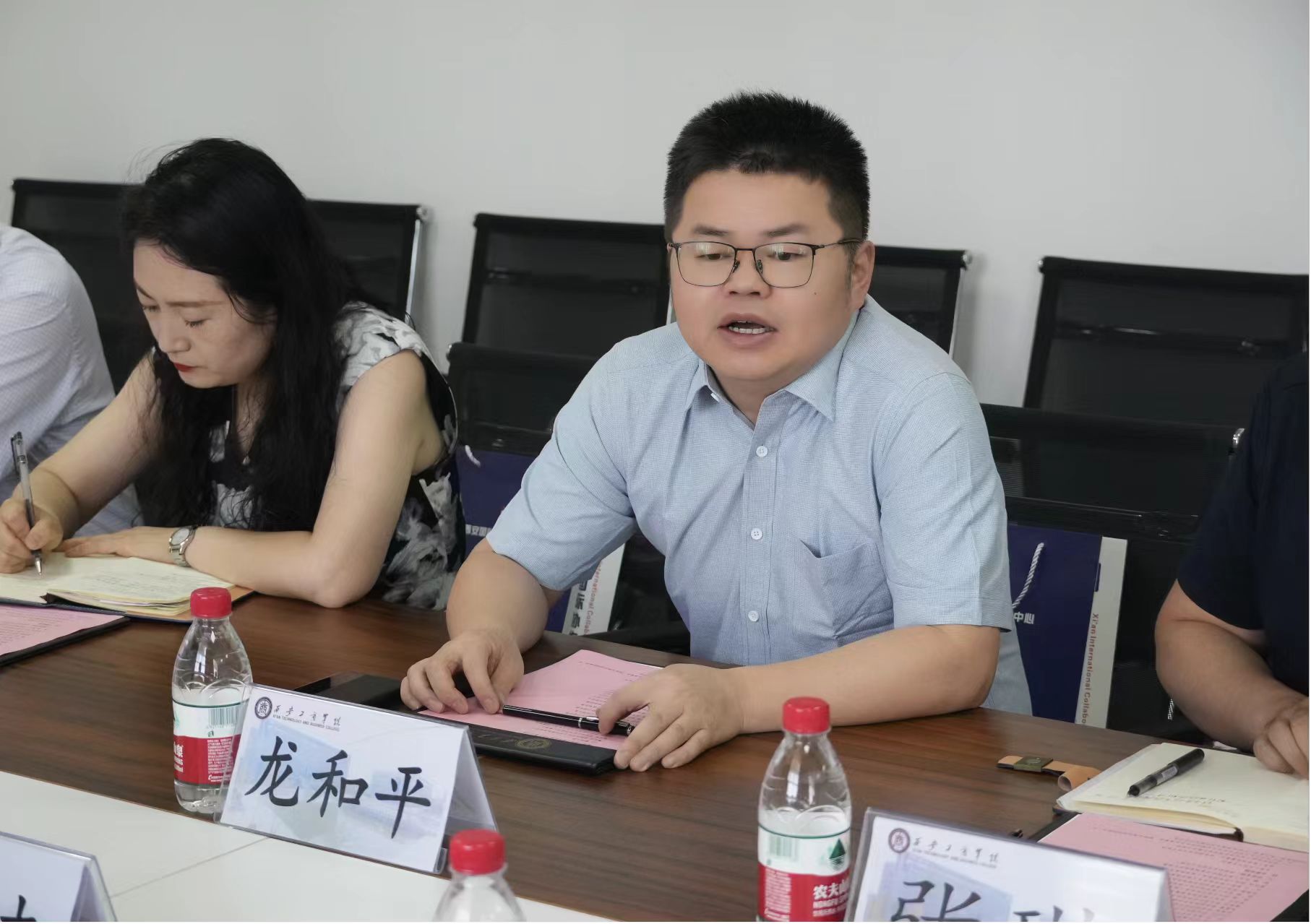 会议伊始,西安工商学院副董事长、常务副校长龙和平致辞,龙校长介绍了学校建设情况等,他强调,学校始终坚持以培养具有创新精神和实践能力的高素质应用人才为目标,而校企合作是实现这一目标的关键途径。通过与企业的紧密合作,学校能够更精准地把握市场需求,优化专业设置,培养出高质量优秀人才。学校期待与高陵区相关企业进一步加强合作,他希望相关企业能够给予学校更多的支持和指导,共同推动人才培养和产学研深度融合。