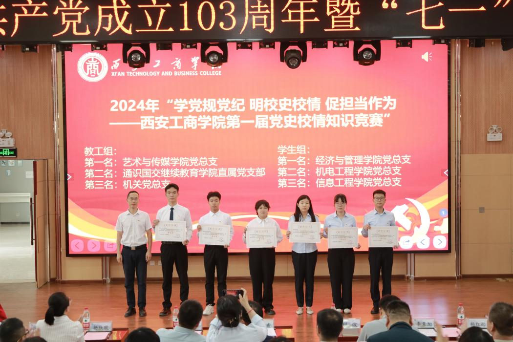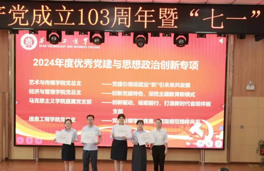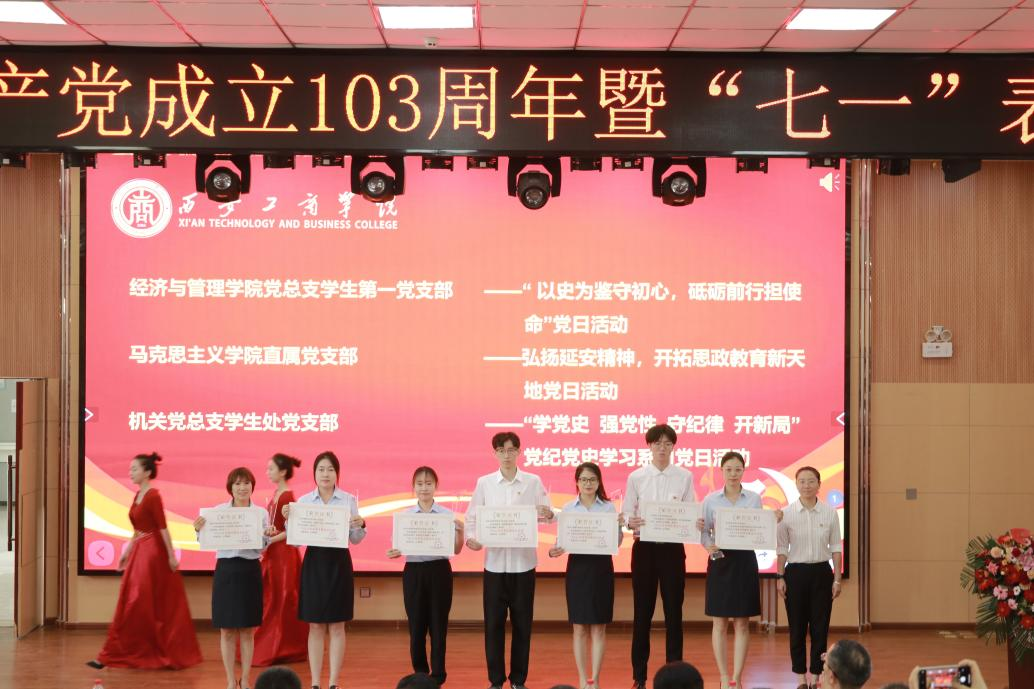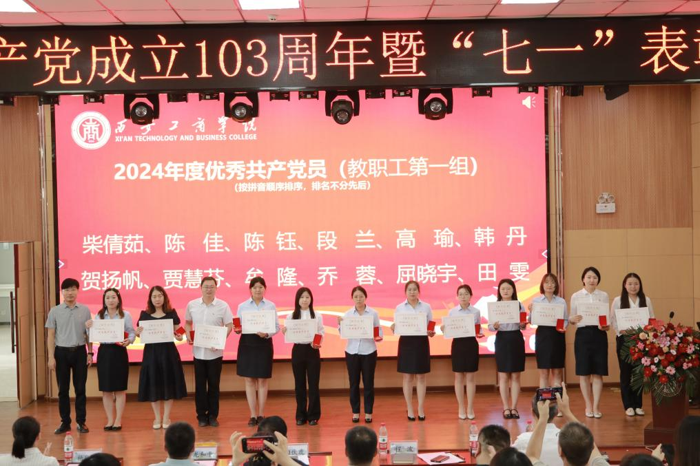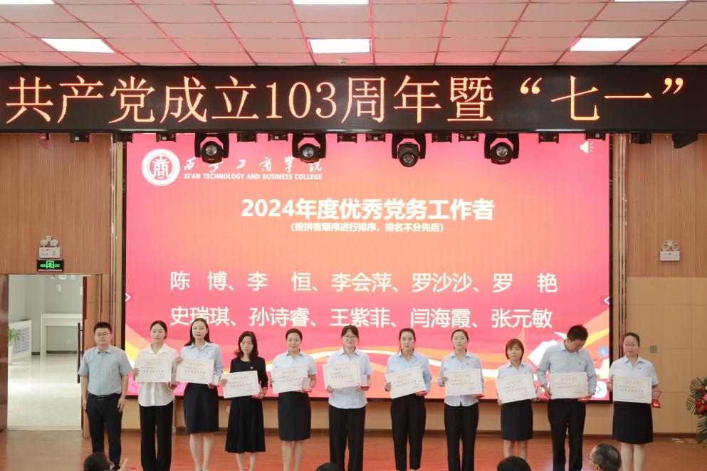 6月28日,西安工商学院在学术报告厅隆重举行庆祝中国共产党成立103周年暨“七一”表彰大会。校党委书记、督导专员田伏虎出席会议并讲话。大会由校党委副书记、纪委书记杨红雨主持。副董事长、常务副校长龙和平,党委委员、副校长程波,副校长杨欣欣,党委委员、党委教师工作部部长闫海霞,党委委员、党委宣传部部长李景阳出席会议,党委各部门负责人、各级党组织负责人及全体党员同志参加会议。
