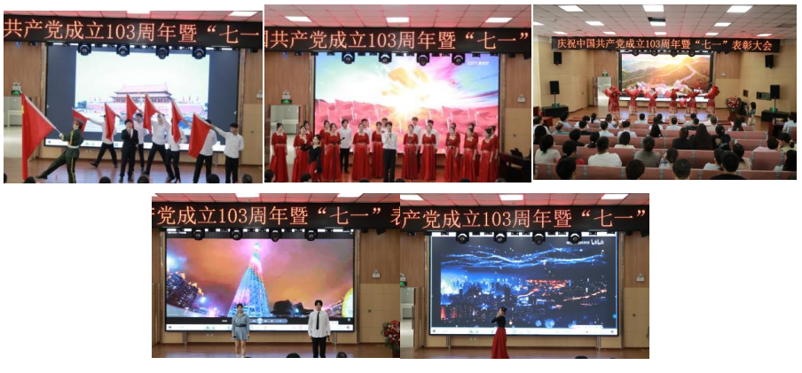 为庆祝中国共产党成立103周年,各二级学院用歌声和舞蹈为党的生日献上了最诚挚的祝福,机电工程学院党总支选送表演《红旗飘飘》、通识国交继教直属党支部选送表演《华夏》、人文学院党总支选送表演《党旗飘扬的方向》、艺术与传媒学院党总支选送表演《我的祖国》、经济与管理学院党总支选送表演《万疆》,都深深表达了对党和祖国的热爱之情。