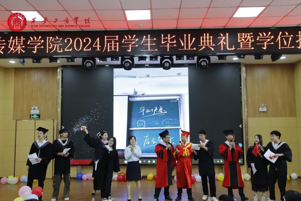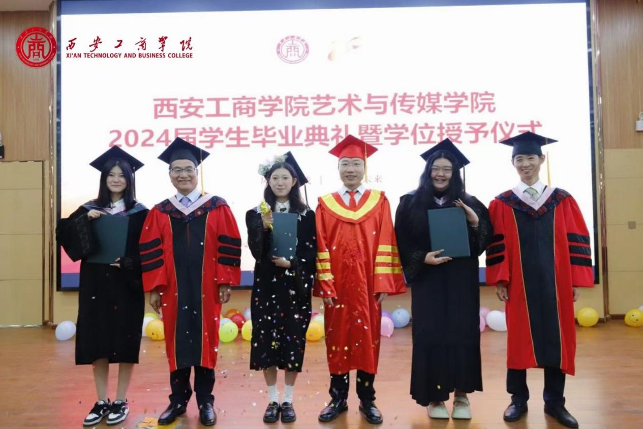 西安工商学院副校长程波,艺术与传媒学院院长陈敏直、执行院长唐红春,共同为毕业生们拨穗并授予学位。学位授予仪式不仅是对毕业生们学业成果的肯定,更是对他们未来人生道路的祝福和期待。
