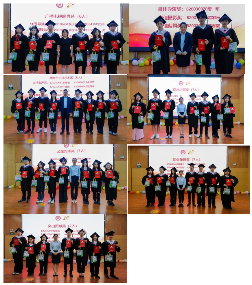 艺术与传媒学院系主任分别为毕业优秀作品获得者颁奖;学院学工老师分别为院级优秀毕业生颁奖。
