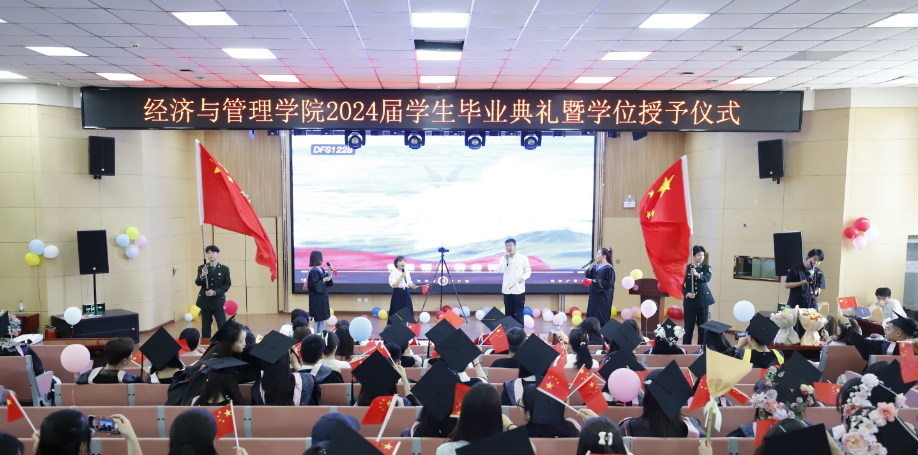 百川汇海,扬帆起航。2024年7月4日西安工商学院经济与管理学院隆重举行2024届学生毕业典礼暨学位授予仪式。西安工商学院党委书记、督导专员田伏虎,经管院院领导,全体教职工及2024届全体毕业生齐聚一堂,共同见证2024届毕业生圆满完成学业,奔赴人生新征程,毕业典礼由经济与管理学院专职教师荆唯一、杜浩源主持。