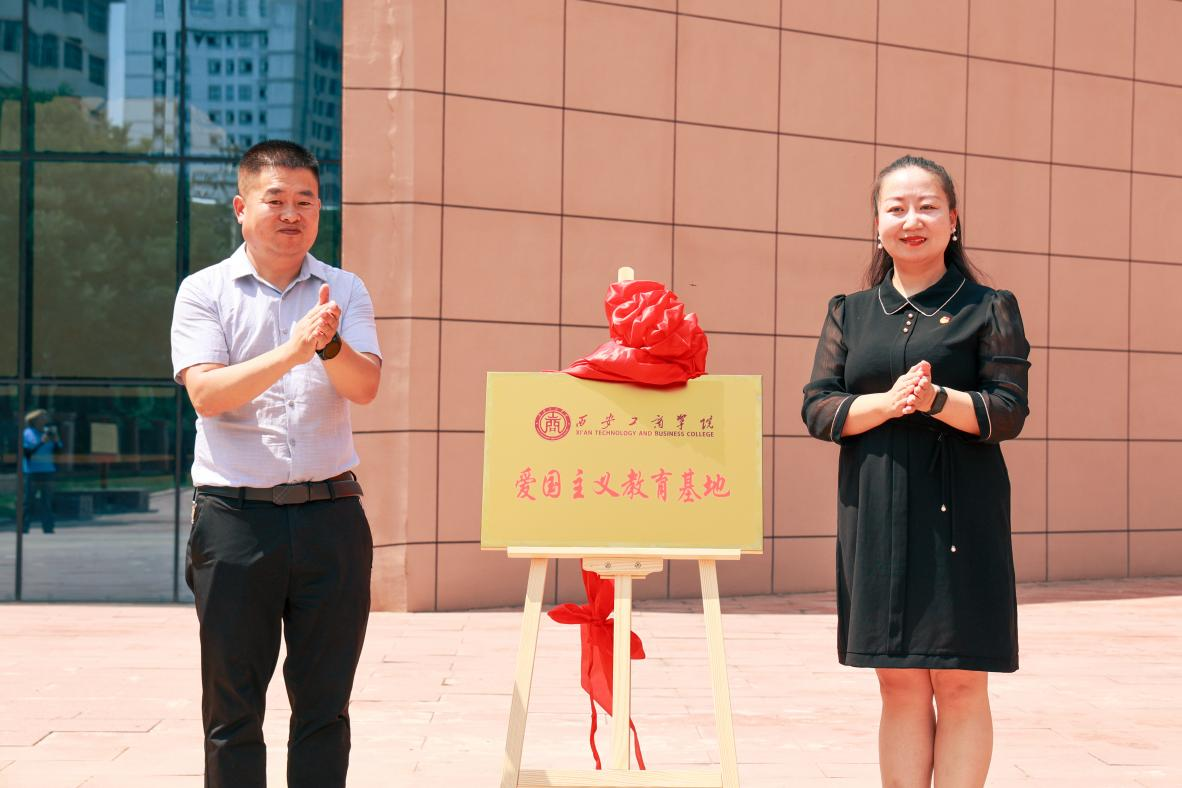 牛怀银副局长代表保安革命旧址、陵园管理所与西安工商学院校团委书记陈博揭牌“爱国主义教育基地”。