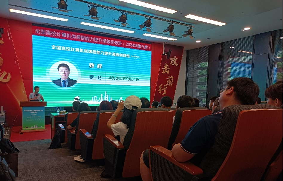 2024年7月13日至14日,教育部高等学校计算机类专业教学指导委员会与全国高等学校计算机教育研究会联合主办,清华大学出版社与华为公司协办的“全国高校计算机类课程能力提升高级研修班(2024年第五期)”在华为成都研究所举办。此次研修班旨在推动新工科背景下计算机类课程体系与教学内容的创新,促进产学研紧密结合,分享教学方法与经验。