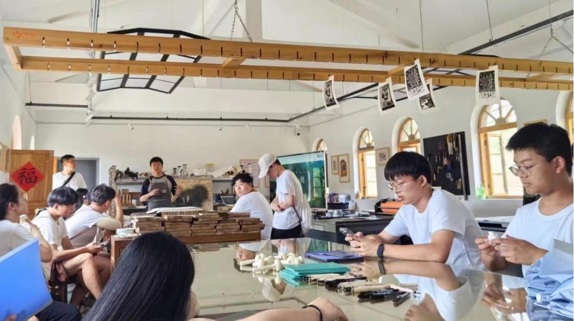 参观完延安文艺艺术纪念馆后,在专业版画老师的指导下,实践团成员参加《一笔一刻》版画制作活动,活动期间队员们专心完成版画作品,体验了版画的创作过程。