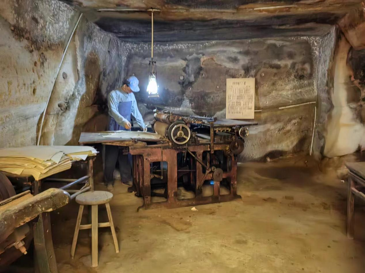 随后,我校筑梦铸魂实践团队师生们前往清凉山参观延安新闻纪念馆。“铁肩担道义,妙手著文章”在这里被体现的淋漓尽致,在参观过程中,我校师生们了解到历史上清凉山的新闻工作者积极响应党中央的号召,创造马兰纸,印刷报刊和马列著作,宣传马列主义思想和党的方针政策。馆内人物模型、场景复原等展示了当年印刷厂工作的流程和环境,包括新华社收发报、印刷排字等。