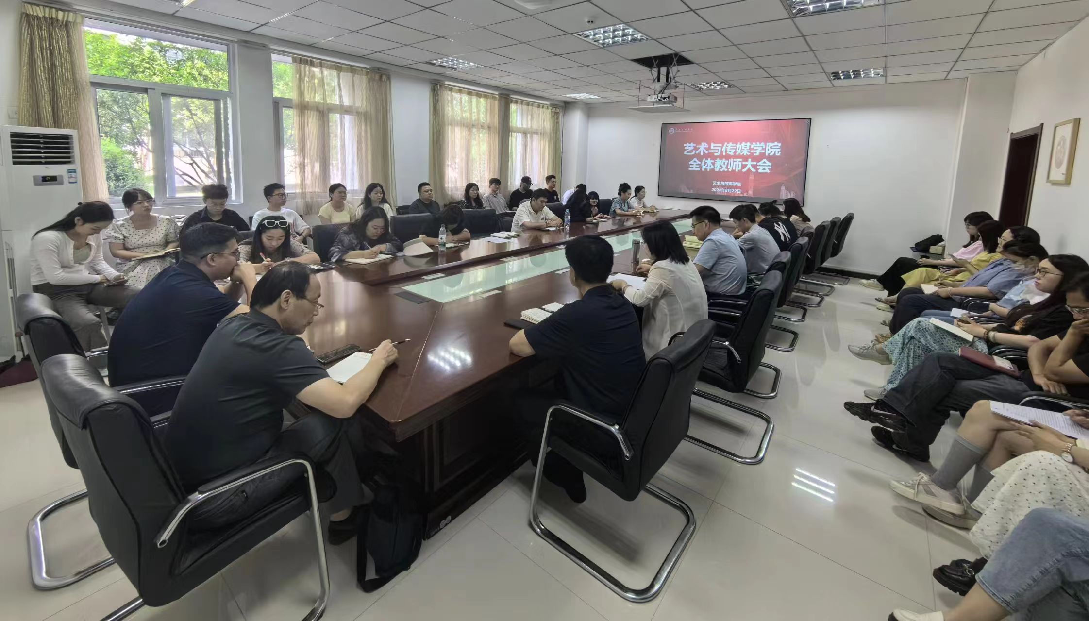 新学期、新作为、新发展。为确保新学期各项工作的顺利开展,2024 年 8 月 22日,艺术与传媒学院组织全体教职工在行政楼一楼会议室召开全体教职工大会,部署新学期工作。会议由院长陈敏直主持。