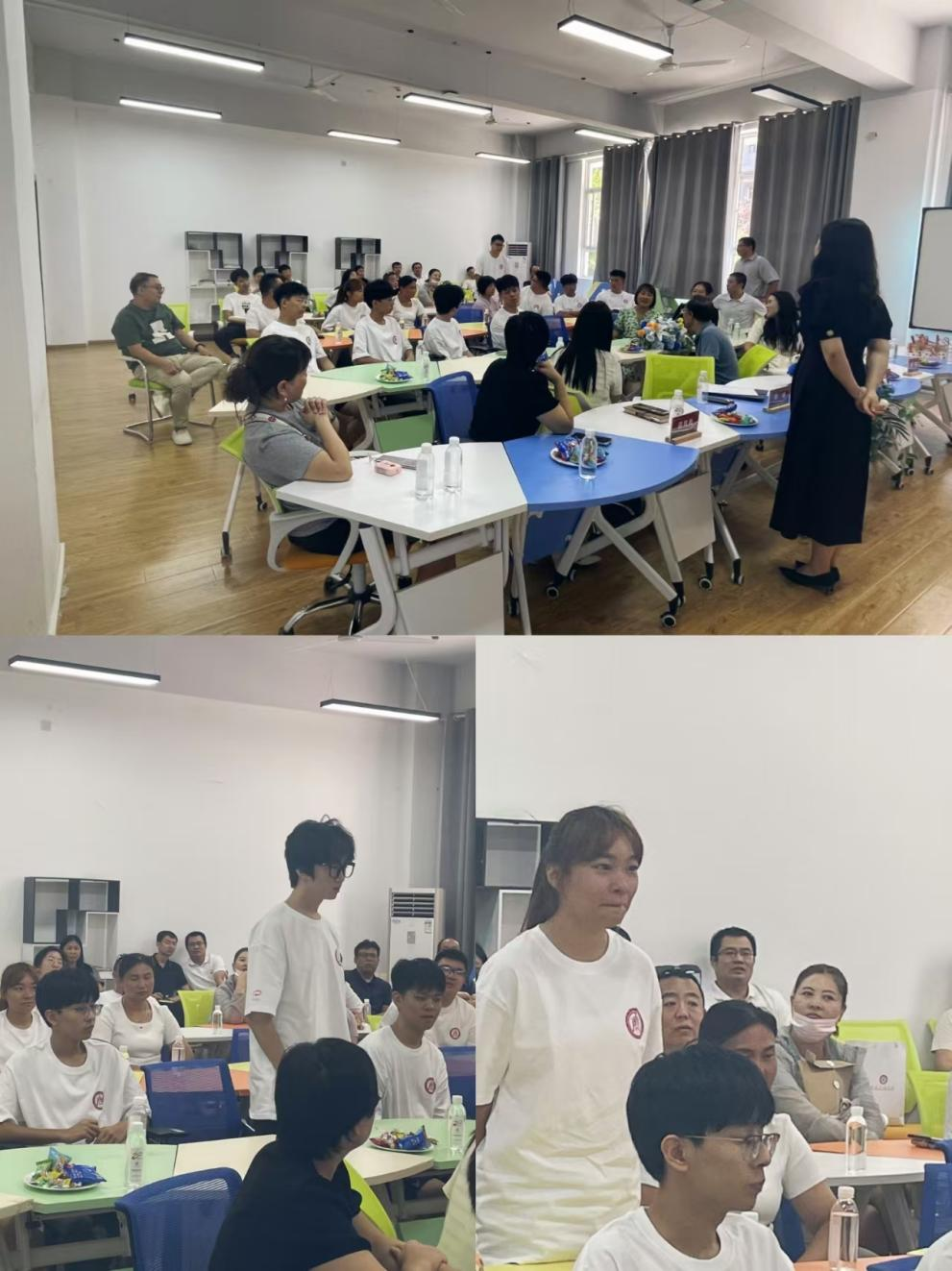 接下来,昕睿班的学生们依次上台进行自我介绍,他们自信地讲述着自己的姓名、专业以及家乡。在介绍过程中,学生们展现出了各自的独特风采和对未来的憧憬,现场气氛轻松活跃。通过自我介绍,学生们不仅增进了彼此之间的了解,也与在座的领导们进行了积极的互动交流。领导们认真倾听着学生们的发言,不时点头微笑,给予他们鼓励和肯定。