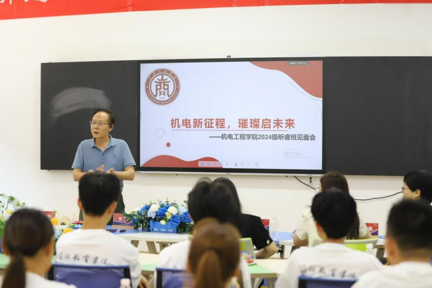 在金秋送爽的好时节,机电工程学院迎来了充满希望与活力的 2024 级昕睿班。为了帮助新生更好地融入大学生活,明确学习目标,机电工程学院于2024年8月28日举行了一场温馨又有意义的迎接见面会。此次见面会不仅是新生们开启大学生涯的重要起点,更是他们追逐梦想、迈向璀璨未来的新征程。