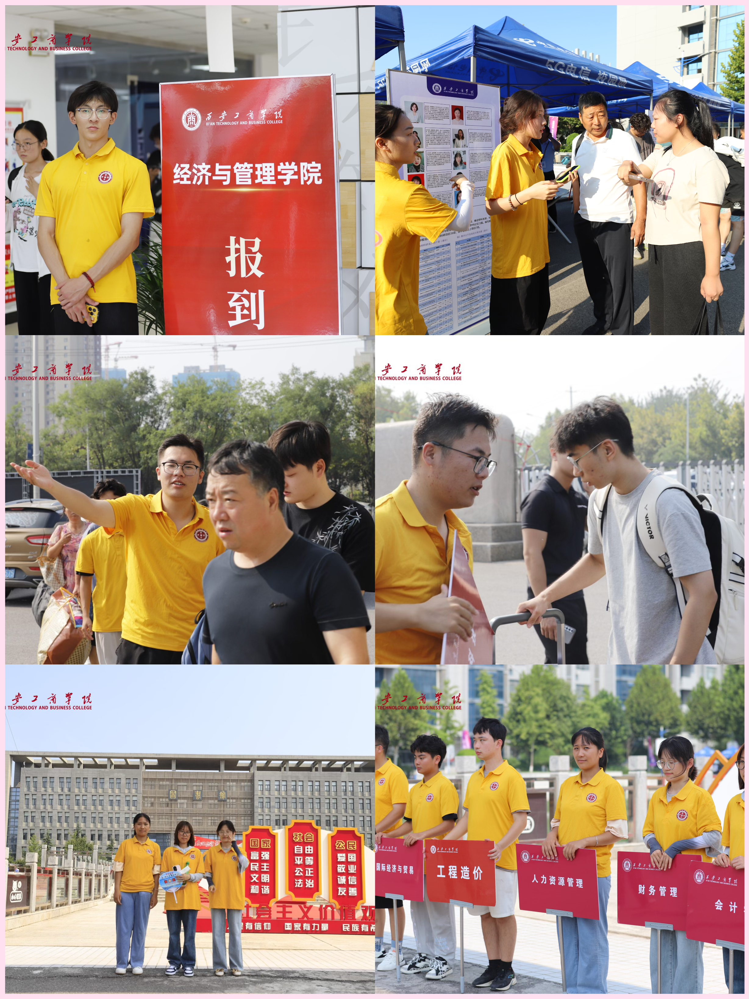 迎新期间,学院领导班子、全体教职工、学生志愿者组成迎新团队,帮助新生进行注册报到、材料核验、家长接待、专业咨询、行李搬运、熟悉校园,并在教学楼2-105室召开了4场不同时间的新生家长见面会,家长见面会围绕认识西工商、走进经管院、国际化合作办学三大核心版块,为新生及家长呈现了内容丰富、视角多元的信息盛宴,让新生及家长全方位了解学校的办学特色与优势,加深了对学院专业建设、国际化合作办学等方面成果的认识,赢得了新生及家长的一致好评。