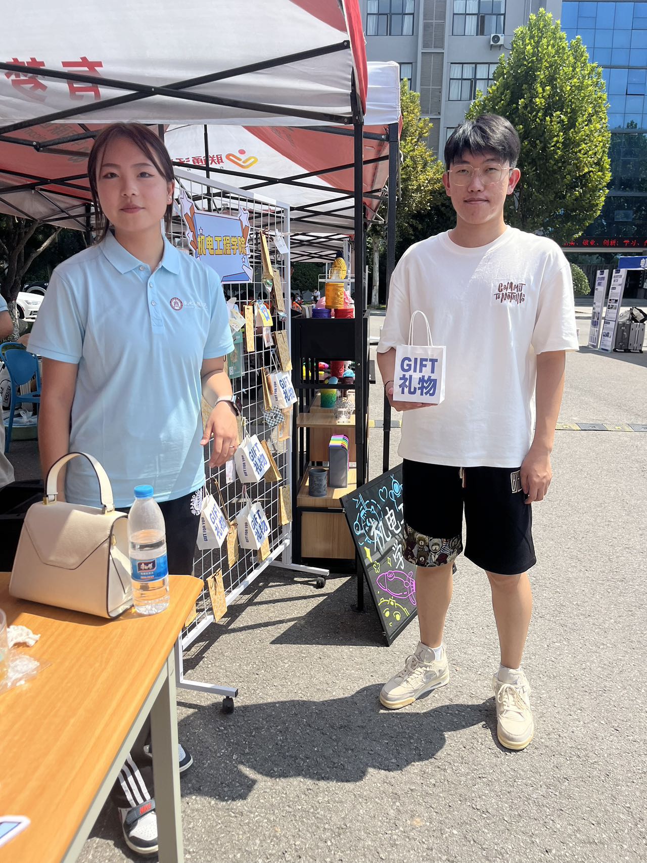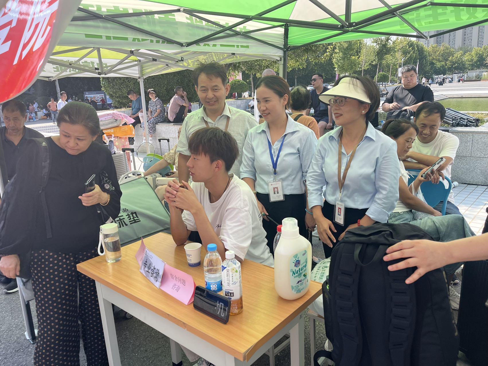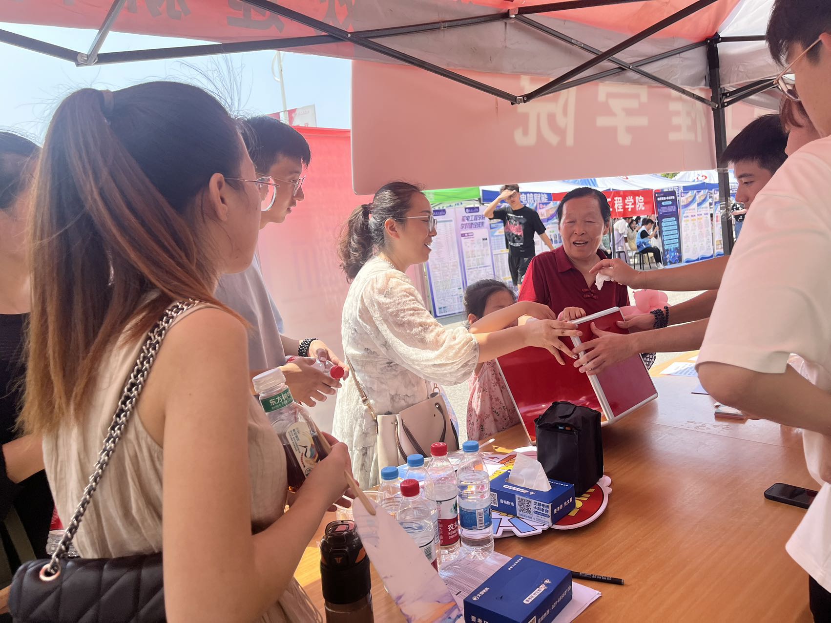 接下来,机电工程学院还特别设置了温馨的咨询区域,为远道而来的新生及家长精心打造了一处休憩与交流的空间。学院细心地准备了凉棚以遮阳避暑,配备了舒适的凳子和清凉的水,以及实用的扇子,让家长们在炎炎夏日中感受到一丝惬意的凉爽。此外,学院还贴心地安排了专业老师驻守咨询点,随时准备为家长们解答关于学院、专业及学习生活的各种问题,让家长们在等待办理手续的过程中,既能安心休息、轻松聊天,又能深入了解学院情况,这份细致入微的关怀无疑为家长们送去了心灵的温暖。同时,机电工程学院为新生们准备了精心挑选的小礼物,旨在让每一位新同学在踏入校园的第一刻就能感受到家一般的温馨与学院的热情好客。更令人兴奋的是,学院还策划了惊喜抽奖环节,让每位新生都有机会获得一份神秘而丰厚的大奖,这份意外的喜悦无疑为新生的大学生活添上了浓墨重彩的一笔,充分体现了学院对新生的热烈欢迎与美好祝愿。咨询区内,除了优质的服务与咨询,还设有专业的学院介绍板块和机电工程学院特色活动的展示区。其中,3D打印模型的精彩展示尤为引人注目,成为了校园里一道亮丽的风景线,吸引了众多家长与学生驻足观看、咨询交流,不仅展现了学院在科技创新方面的实力与成果,也进一步激发了新生们对未来学习生活的憧憬与期待。