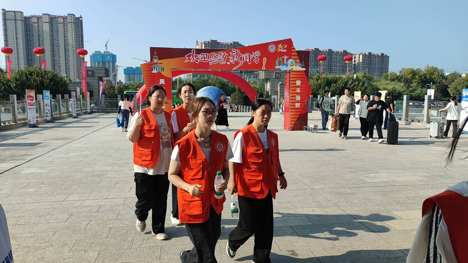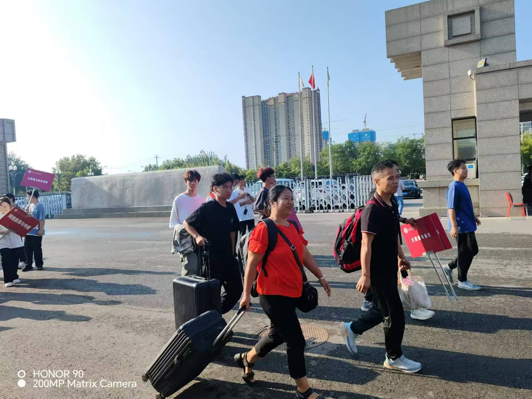 首先,机电工程学院在校门口精心布置了迎新服务站点,学长学姐们身着统一的服装,面带微笑,以最佳的精神状态迎接每一位新成员的到来。他们手中高举着鲜明的专业名称牌,宛如一盏盏明灯,让初来乍到的新生及家长能够迅速而准确地找到自己的归属,实现了从校门到学院的无缝对接,展现了学院迎新工作的精准与高效。随后,学长学姐们化身成为贴心的向导,为新生及家长提供全方位的入校引导与帮助。他们不仅耐心地解答新生们提出的各种问题,还亲自引领他们前往各自学院的报道点,确保每位新生都能顺利完成注册手续。在这一过程中,学长学姐们更是主动伸出援手,热情地为新生搬运行李,每一个细微的动作都流露出他们对学弟学妹的深切关怀与无私爱心,充分展现了机电工程学院学长学姐们的热情与担当。