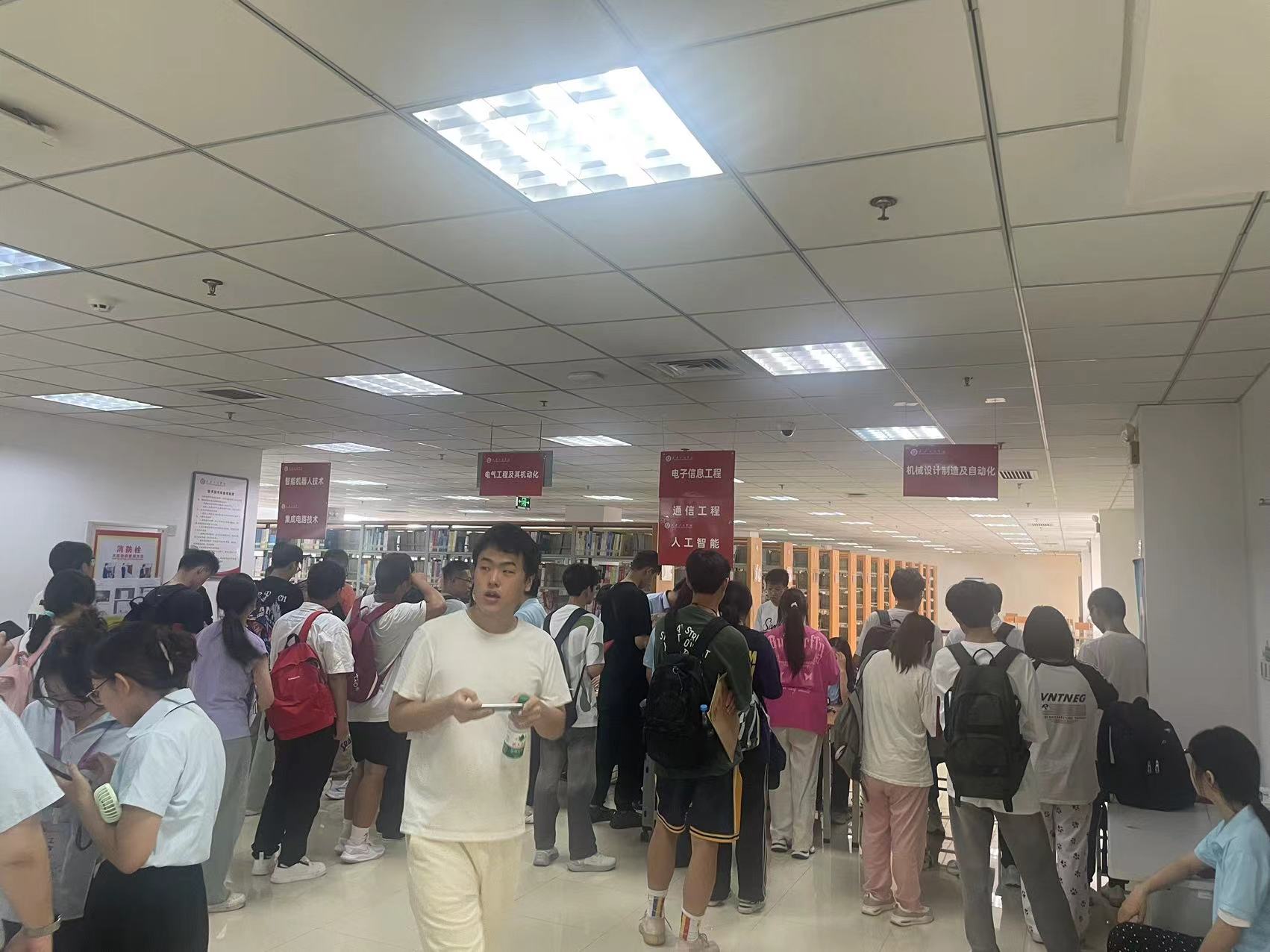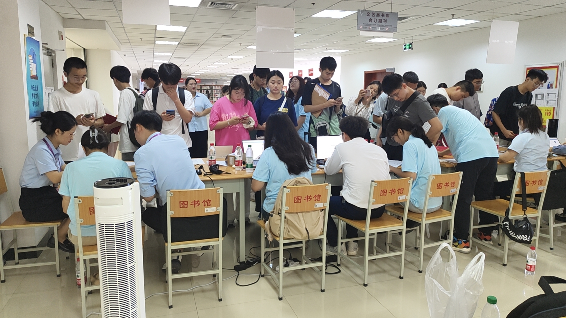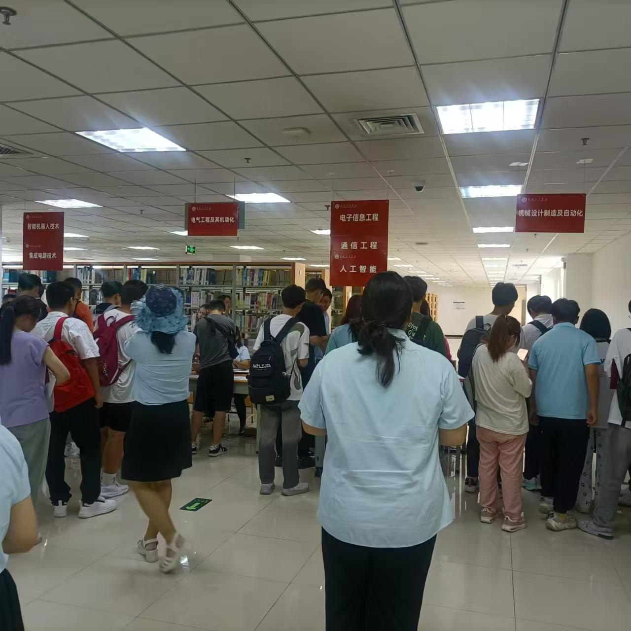 随后,新生们踏入了图书馆二层的联合办公区域,这里成为了他们与家长暂时分别的温馨驿站。新生们将独立踏上办理入学手续的旅程,而家长们则可在精心布置的咨询点安心休息,耐心等待。这一刻,或许正是每位新生迈向独立自主人生的重要一步,没有了家长的贴身陪伴,少了老师的日常督促,也暂时离开了熟悉同学的援手,一切挑战与机遇都将由自己勇敢承担。正如即将踏上远行征途的旅人,他们背起知识的行囊,放下过往的荣耀,以微笑面对未知,心中满载着家人深深的祝福与期盼——“祝你一路顺风”。然而,新生绝对不是孤军奋战,这里,有一群关心你们成长的领导,一群热爱教育、无私奉献的老师,以及一群志同道合、亲如家人的挚友,在这温馨的校园里共同成长和进步。在有序排队等待办理报到手续的过程中,每一位新生都展现出了作为大学生应有的自律与素养,这一幕幕温馨而有序的场景,预示着未来四年里,你们将共同书写属于自己的精彩篇章。