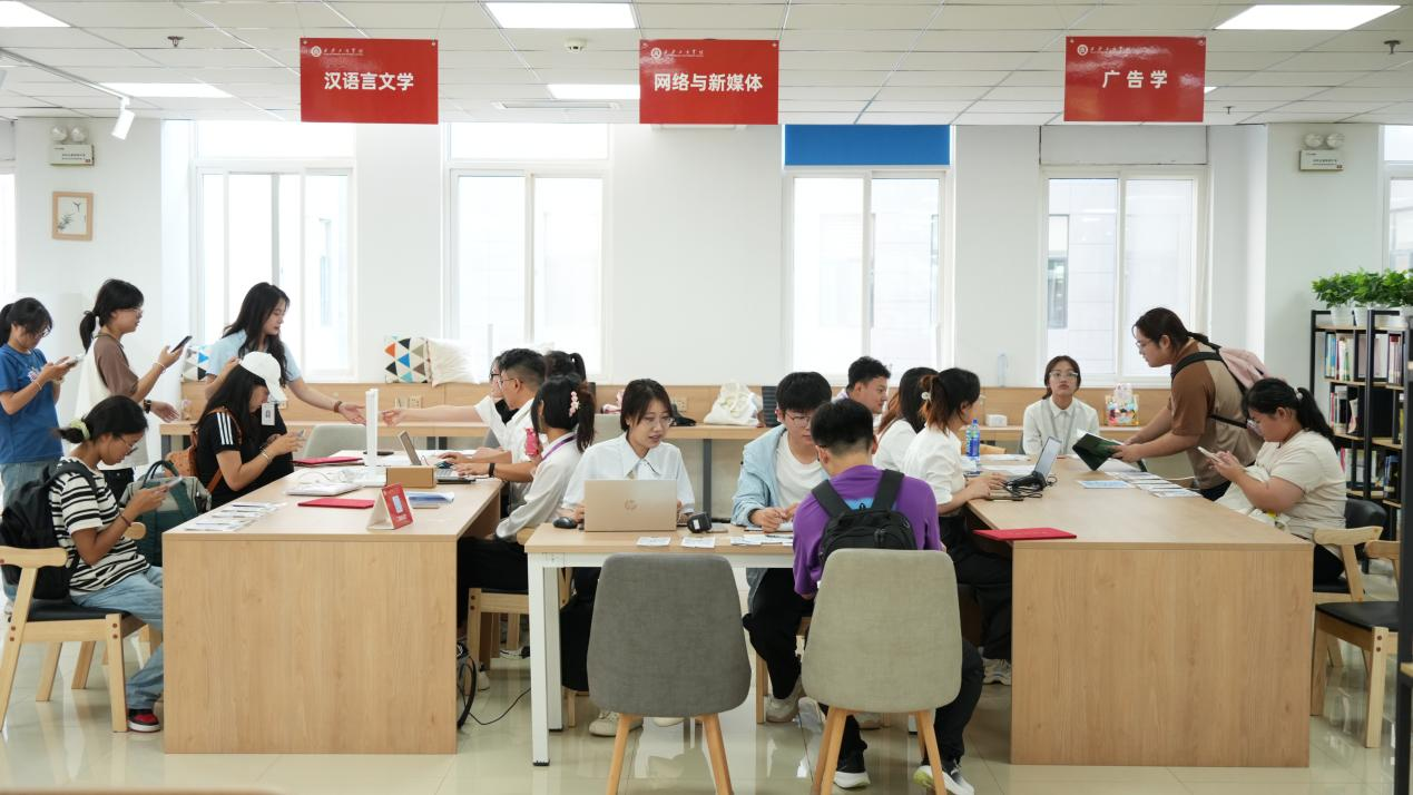 在图书馆内,学院的辅导员和学生志愿者们认真负责,帮助新生办理报到手续,各环节清晰有序。新生们在此高效率地完成了身份审核、注册报到、保险缴纳等手续。