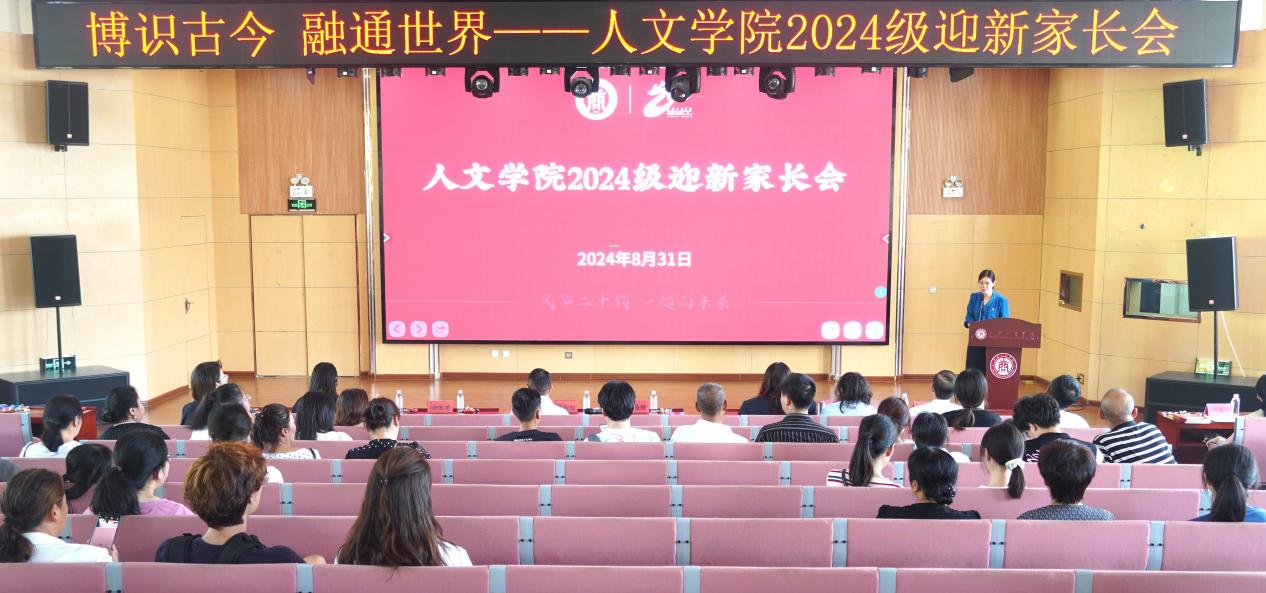 为贯彻落实“立德树人”的根本任务,进一步强化大学生思想政治教育和管理工作,增进学院与新生家长的联络、沟通及交流,共同推动学生健康成长,人文学院于2024年8月31日至9月1日在学术报告厅召开新生家长见面会。人文学院党总支副书记、副院长原朝阳,人文学院党总支书记、副院长范诚梅,新闻传播系学科带头人陆应铸,中文系学科带头人白军芳,中文系主任许晶晶,新闻传播系主任宋莹,广告设计系主任罗曼,国际教育学院留学服务中心主任乔奕桐,产教融合与实践教学中心主任张欢生及部分教师参加了会议,会议由范诚梅主持。