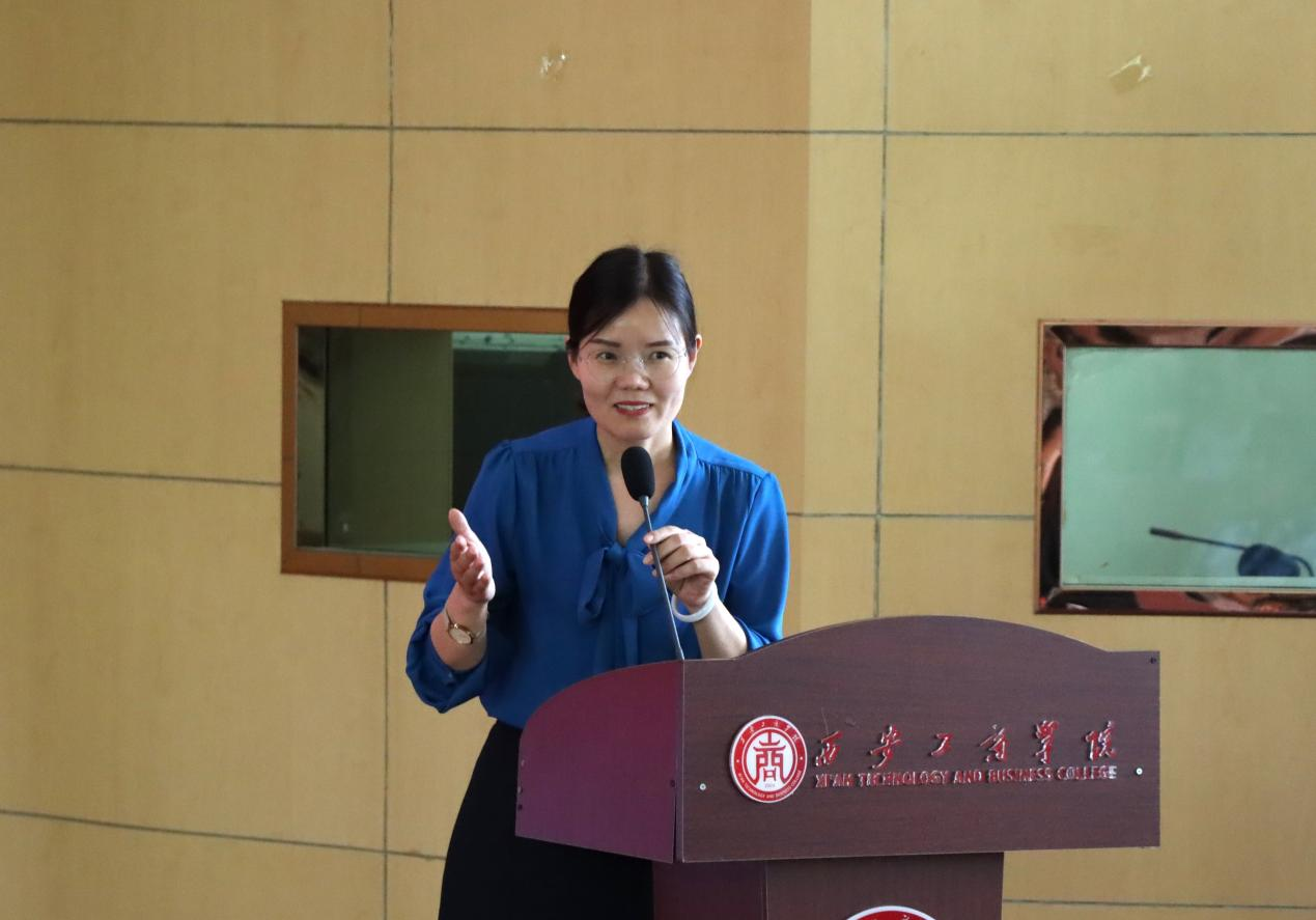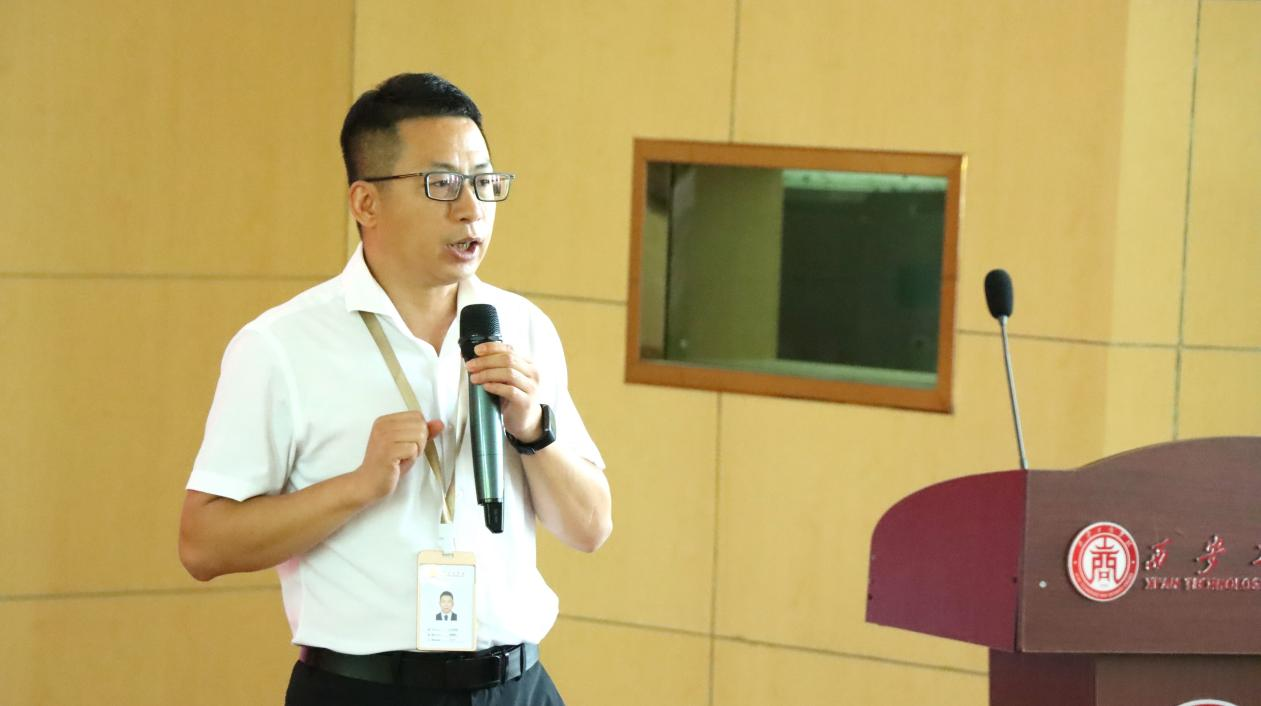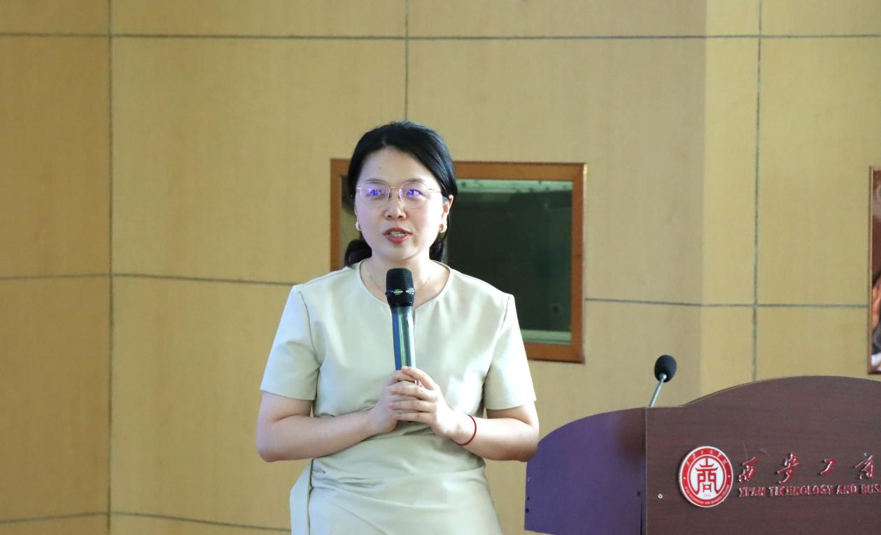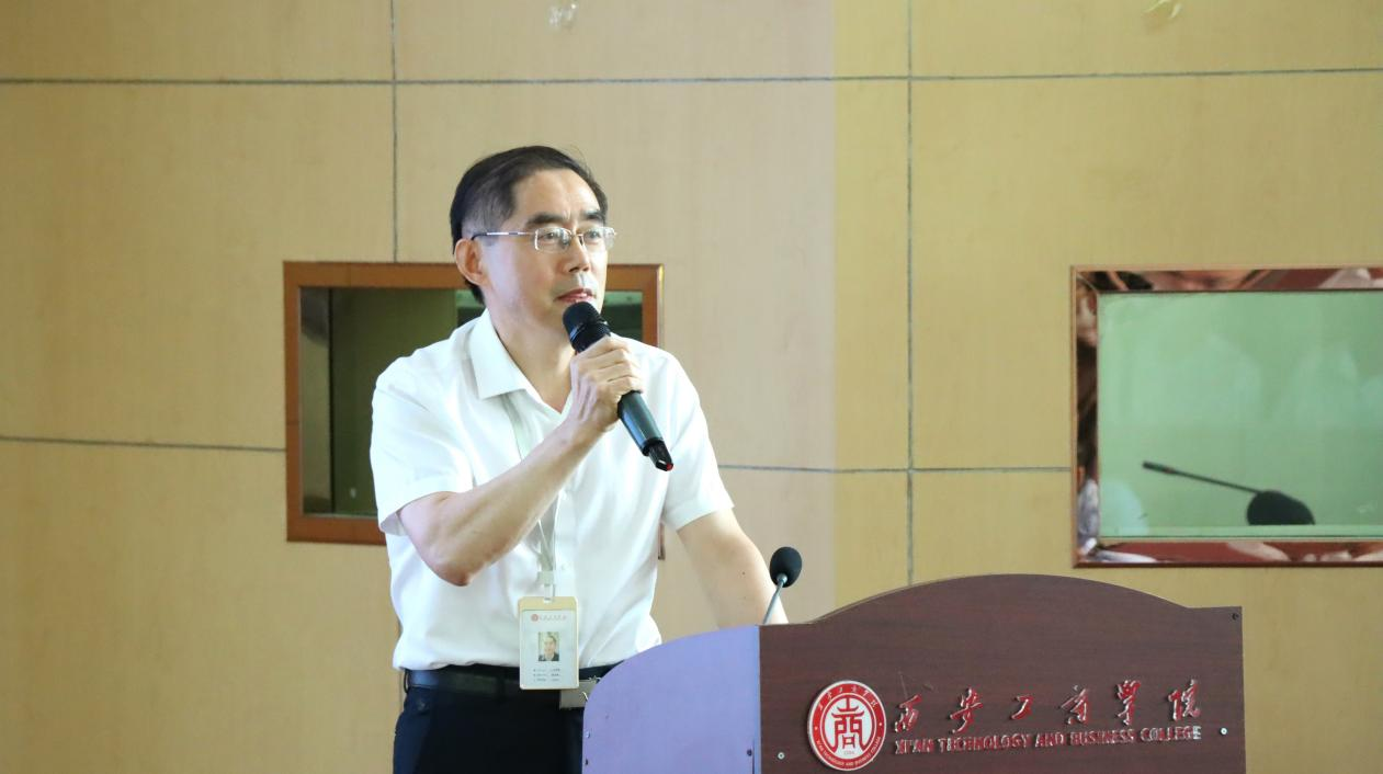 紧接着,原朝阳副院长介绍学校和学院的基本情况。他表示,西安工商学院建校于2004年5月,2020年3月30日,学校由西安工业大学北方信息工程学院转设为西安工商学院。目前学校拥有本科专业21个,高职专业13个,在校生人数达15000余人。他从专业和课程突出成绩、教师教学科研成果、产教融合与校企合作三个方面出发介绍人文学院。他强调,学院以“为党育人,为国育才,积极服务区域经济社会发展”为使命,秉承“观乎人文,化成天下”的价值观,始终坚持“产出导向,以生为本,追求质量,突出实践”的育人特色。