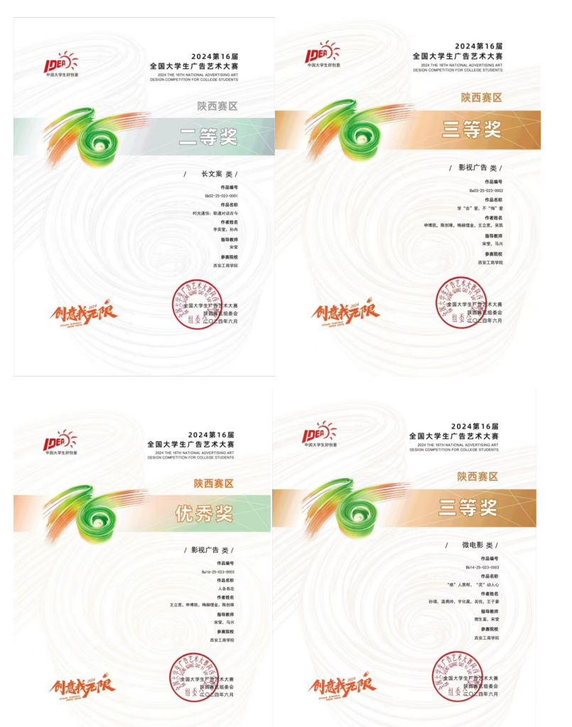 近日,西安工商学院人文学院的七支团队在第16届全国大学生广告艺术大赛中表现优异。人文学院新闻传播系共获得7项奖项,其中四项国家级奖项和三项省级奖项。