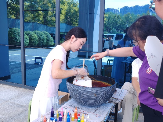 活动现场,弥漫着浓厚的文化氛围。老师们齐聚一堂,怀着对传统文化的好奇与热爱,开启了这场非遗之旅。通识教育学院心灵手巧的非遗社团成员向老师们详细介绍了漆扇制作的历史渊源和工艺技巧。从古老的漆艺传统到现代的创新发展,每一把漆扇都承载着千年的文化传承。