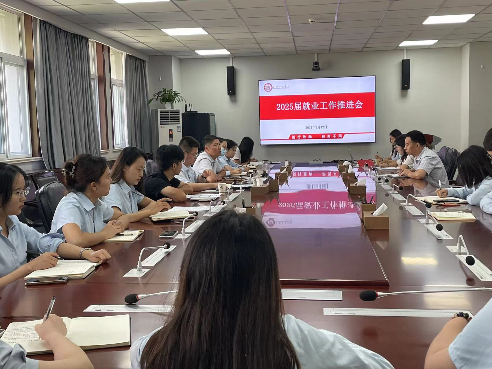 为进一步做好2025届毕业生就业工作,引导毕业生树立正确的就业观、择业观,提高毕业生就业积极性和主动性,助力毕业生实现高质量充分就业,近日上午,学校学生处在行政楼三楼会议室召开了2025届毕业生就业推进会,学校副董事长、常务副校长龙和平,副校长程波、学生处处长王宇、2025届毕业班辅导员及大学生就业指导中心全体人员参加了此次会议,会议由学生处处长王宇主持。