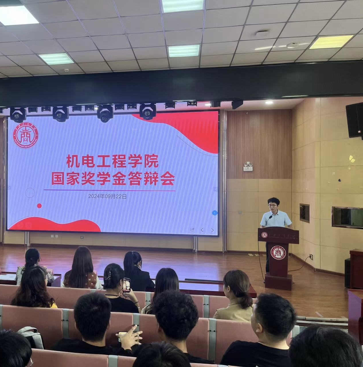 机电工程学院执行院长韩娟、党总支书记学工副院长罗艳、教学副院长薛凤凤和2023年国家奖学金获得者陈悦,学院教师代表、全体辅导员以及近300名学生参加了观摩。