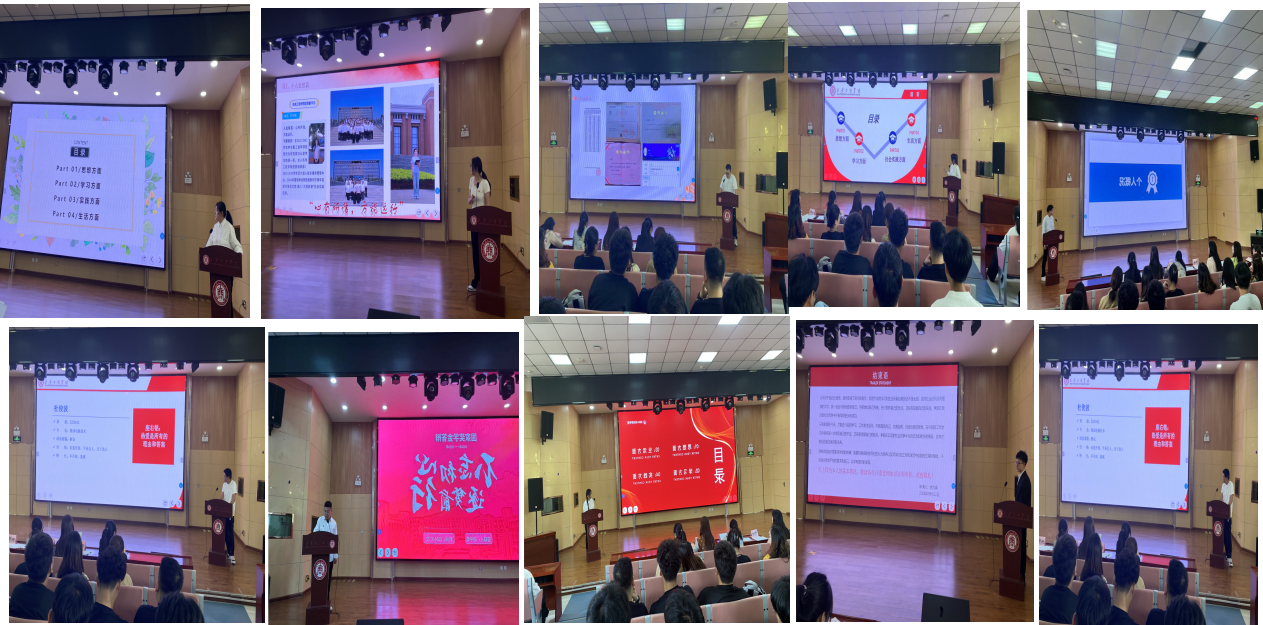 接下来,进入了本次答辩会的核心环节——候选人答辩。候选人依照抽号顺序依次上台参与答辩,通过演示PPT介绍自己的校园经历、获奖情况以及他们对未来的规划等,同学们自信大方,表现出色。