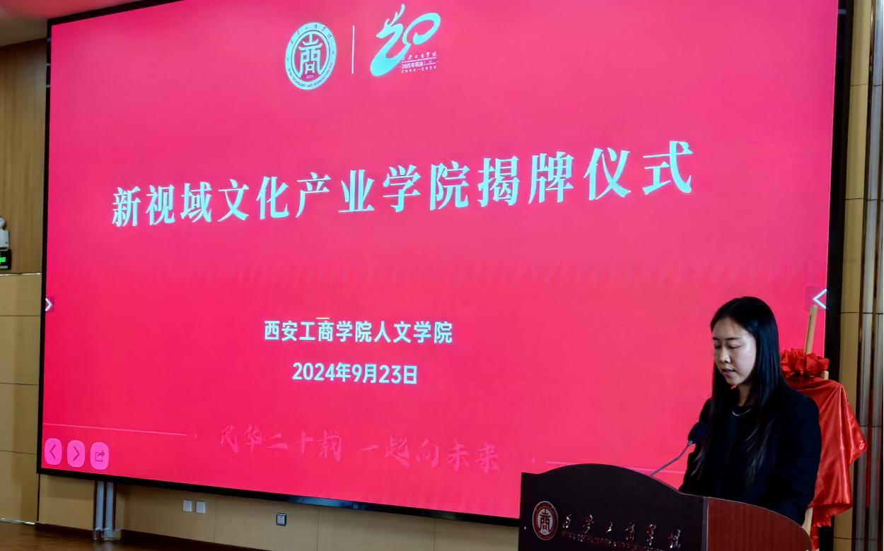 新视域文化产业学院负责人王妙笛女士表示,产业学院就是推动产教融合的载体和抓手,西安工商学院已经建立了数字智能、信息技术、传媒、设计等产业学院,积累了丰富的实践经验和成果。在产教融合,协同育人方面走在同类高校的前列。今天为进一步推业全方位合作,新势与文化产业学院揭牌成立,可谓恰逢其时。本次新成立的新视域文化产业学院也将成为学校的汉语言文学中文专业建设提供更丰富的资源保障。与高校共同探讨校企人才培养新模式,协同搭建新平台建设师资新队伍,资源共享新机制和定点帮扶新形势,努力搭建广阔的校企合作平台,培养出更多与企业发展相契合的应用型,复合型人才。通过学科共建,校际共享,校地共荣,推动产教融合,开发眼界。这标志着校企合作为落实国家战略,服务产业发展,优化学科布局迈出了重要的一步。