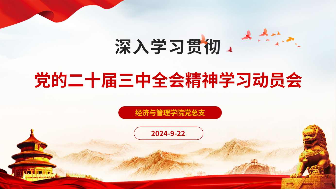 为全面深入学习贯彻党的二十届三中全会精神,扎实推进基层党组织理论学习高度和实践水平。9月22日上午,经济与管理学院党总支围绕“凝聚共识 奋发前行”主题,开展党的二十届三中全会专题学习动员会。各总支委员、支部书记参加了会议,此次专题会议由经济与管理学院党总支书记李会萍主持。