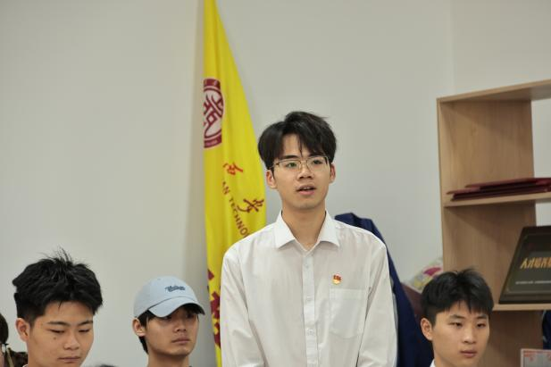 2024级班导师(学业导师)代表、青年教师丁俊武发言。他表示,作为班导师将认真履行职责,在学习、生活等各方面给予学生指导,尽全力帮助学生解决成长中的困惑和难题。