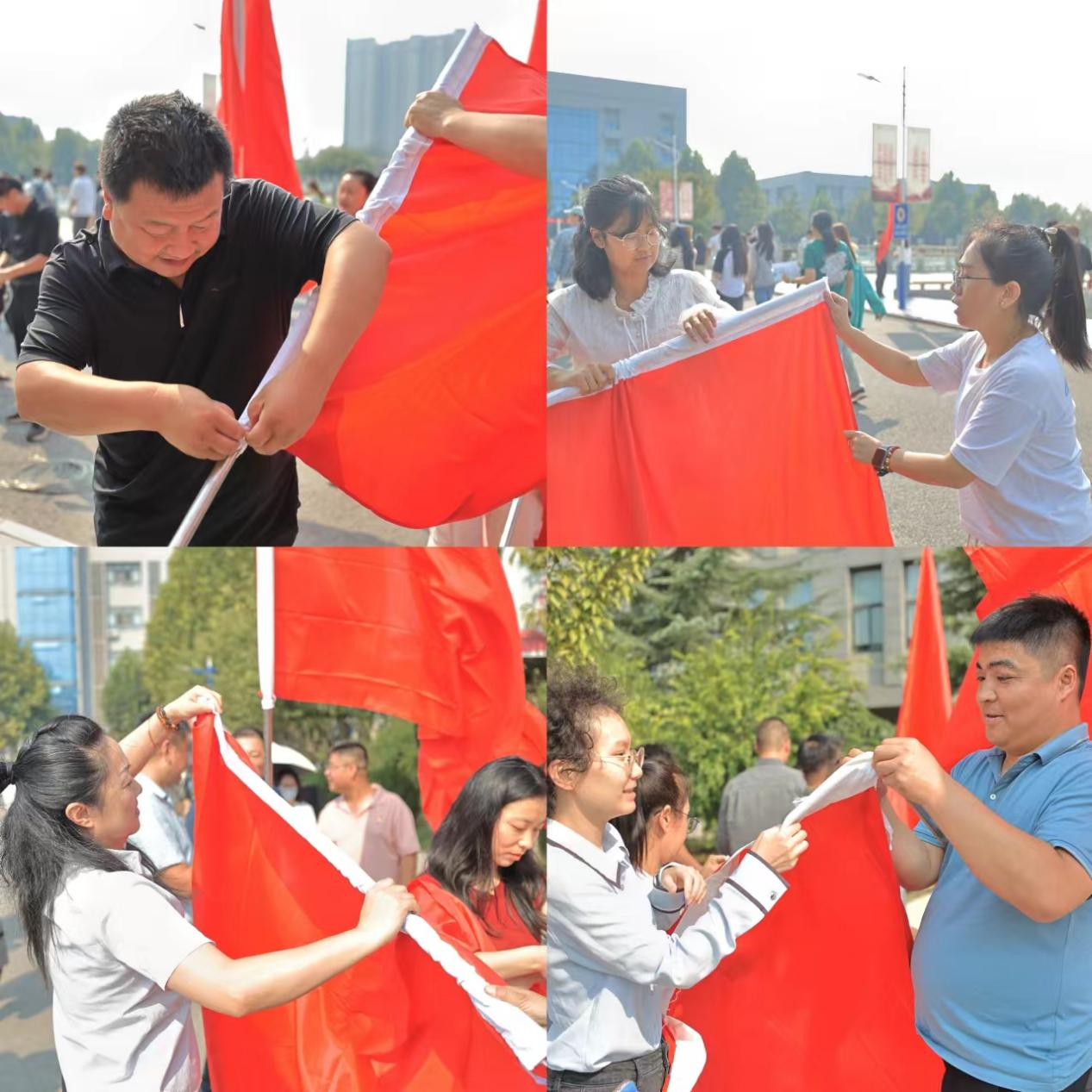 各位老师分别在教学楼、实验楼、泮池等地悬挂国旗及红旗,现场气氛热烈,不一会儿一抹抹“中国红”就随风飘扬起来,形成校园里一道靓丽的风景线,不少师生纷纷驻足欣赏,此次活动营造了热烈的节日氛围,充分激发了我校师生更加浓厚的爱国热情。