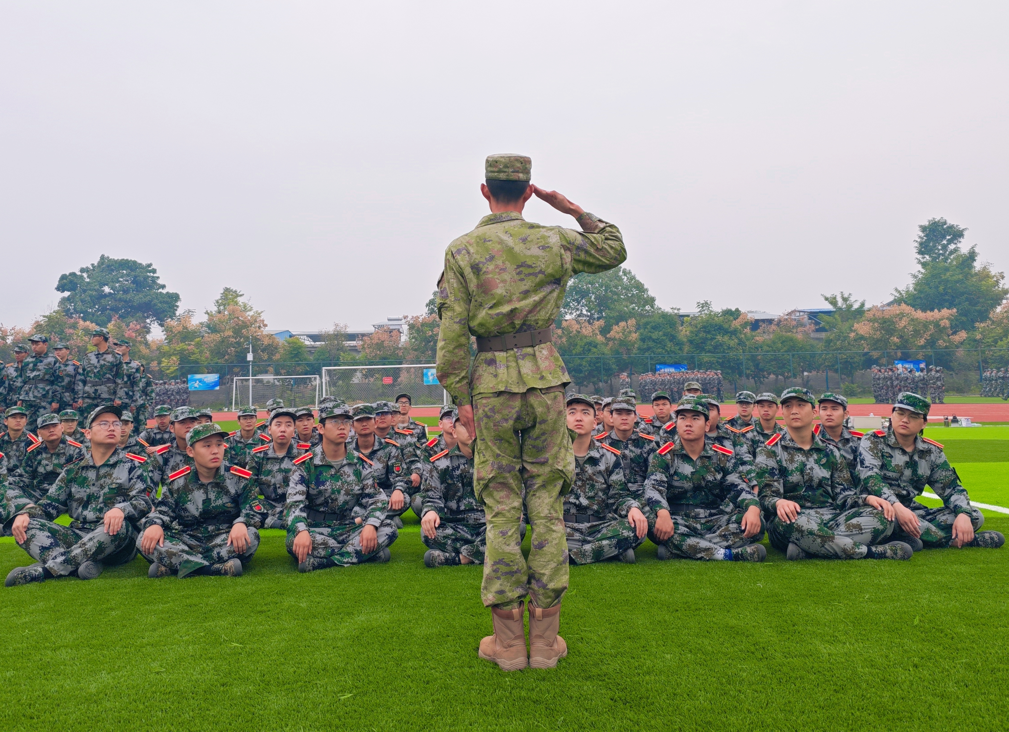 作为教官,连长们以自身的精神气概由内而外的影响着每一位学员,而作为连长,当学生们团团围坐在身周,当嘹亮的歌声响彻蓝天,他们是严师,更是益友,领唱军歌时的亲切,关心同学们身体时的体贴,学员们看在眼里,记在心里。作为中国军人,他们是一柄柄锋利的尖刀,锋芒毕露;作为教官连长,他们是一块块磨刀石,坚定却又亲切。他们像那明媚的秋阳,热烈而温柔;他们也像坚挺的白杨,执拗的耸立着,磨折不倒,望着后辈前进的方向。