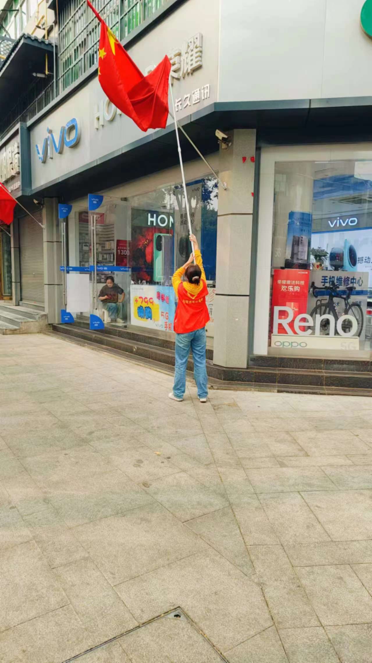 国旗代表着国家的独立和民族的尊严,是祖国和民族的象征。护旗志愿者们对国旗升挂情况进行现场检查、整理工作,对升挂不合格或有其他问题的国旗请求更换,对卷起缠绕的国旗进行维护整理,对落地的国旗及时整理归位。他们以实际行动进一步强化了爱国主义精神,使公益成为社会实践的一部分,礼赞祖国,让红旗高高飘扬。