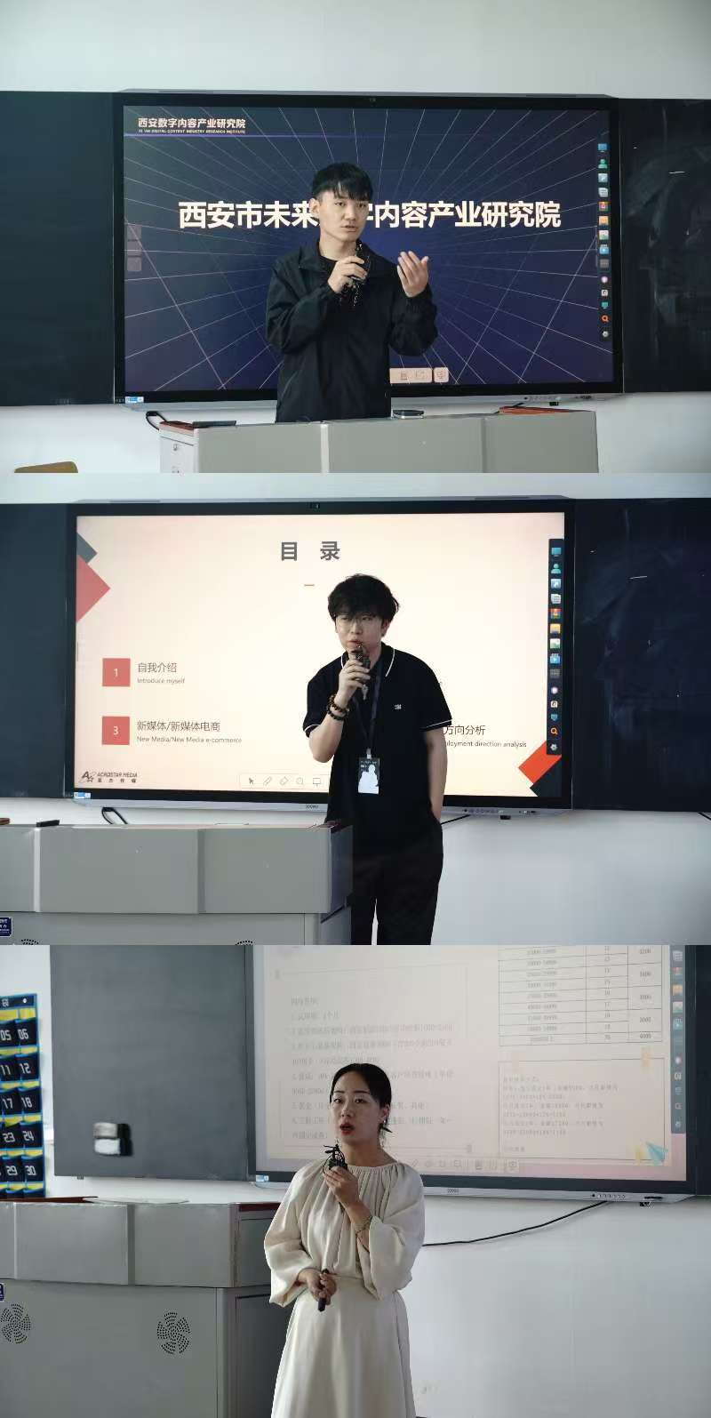 陕西大秦宇宙数字技术有限公司、陕西星杰文件传媒有限公司、陕西博泰为网络科技有限公司和丝路空服(陕西)教育投资控股有限公司四家企业的代表上台宣讲。他们介绍了公司业务、文化、实习岗位及招聘要求,分享了人才培养和职业发展经验,耐心解答了学生们关心的实习待遇和职业发展问题,并对西安工商学院人文学院学生表示高度认可和期待。宣讲会现场气氛热烈,学生们对未来实习和就业有了更清晰的认识和规划,感受到了学校与企业的关心,更加坚定了投身社会、服务国家的信心和决心。