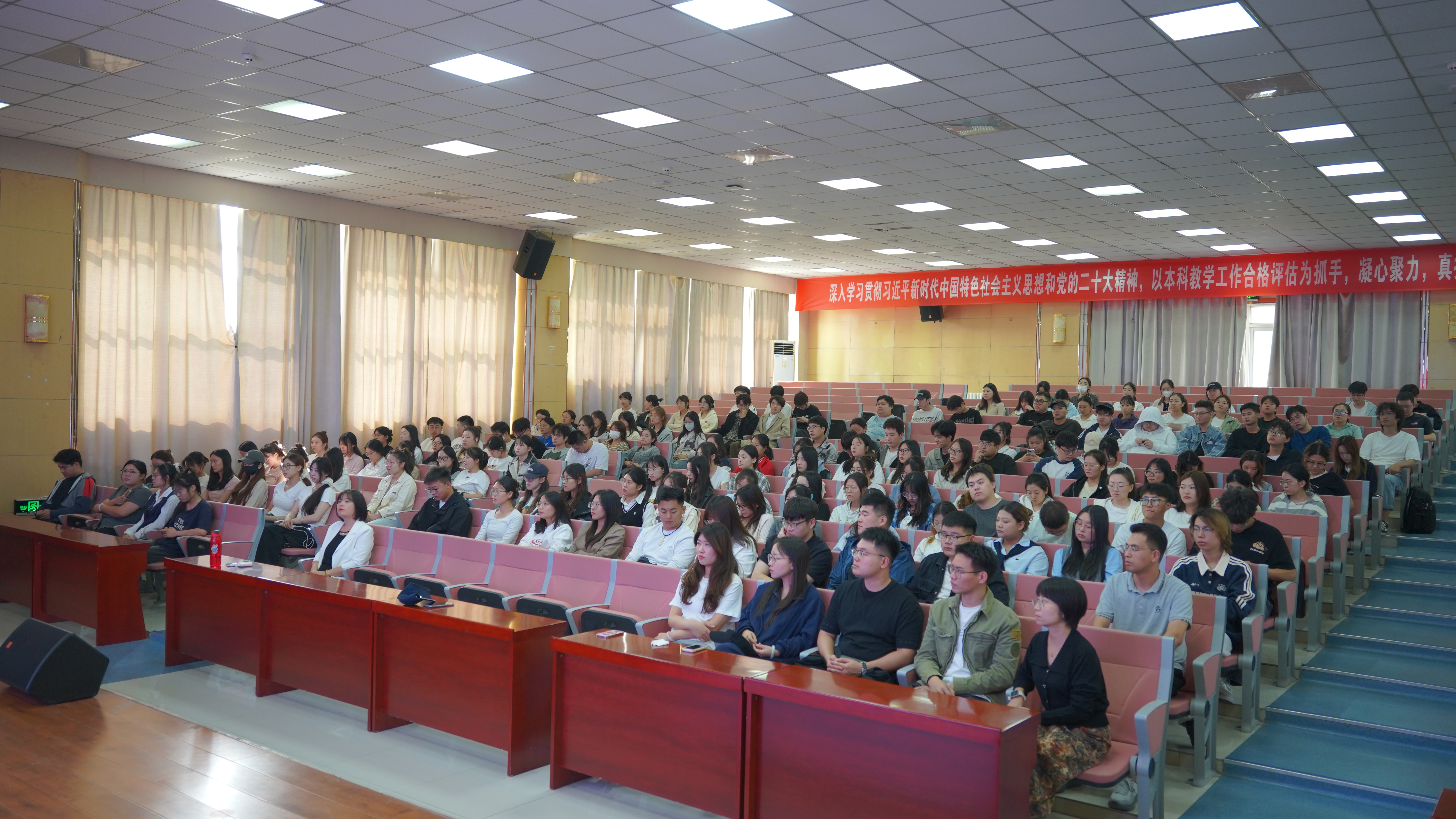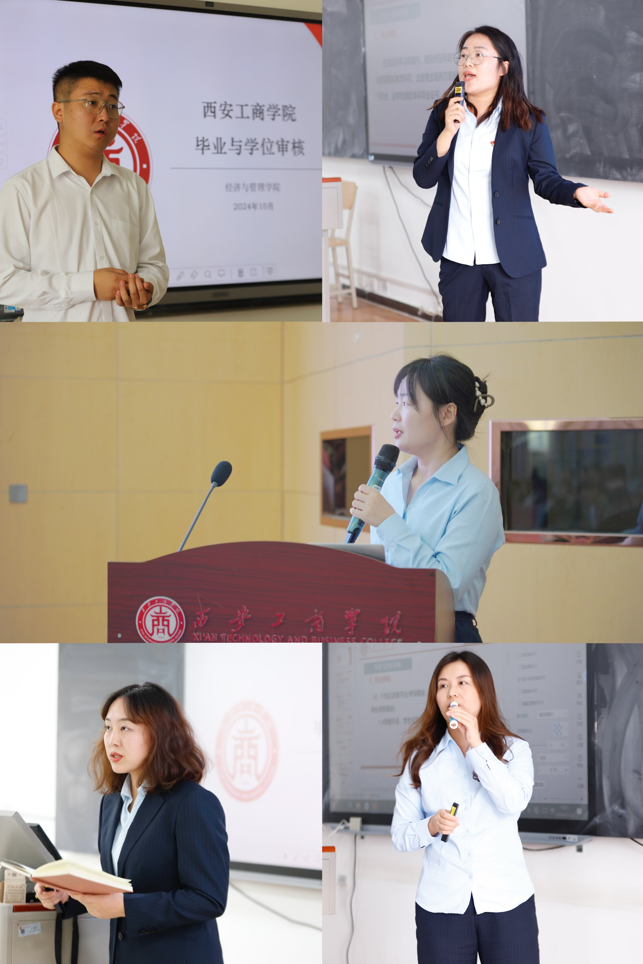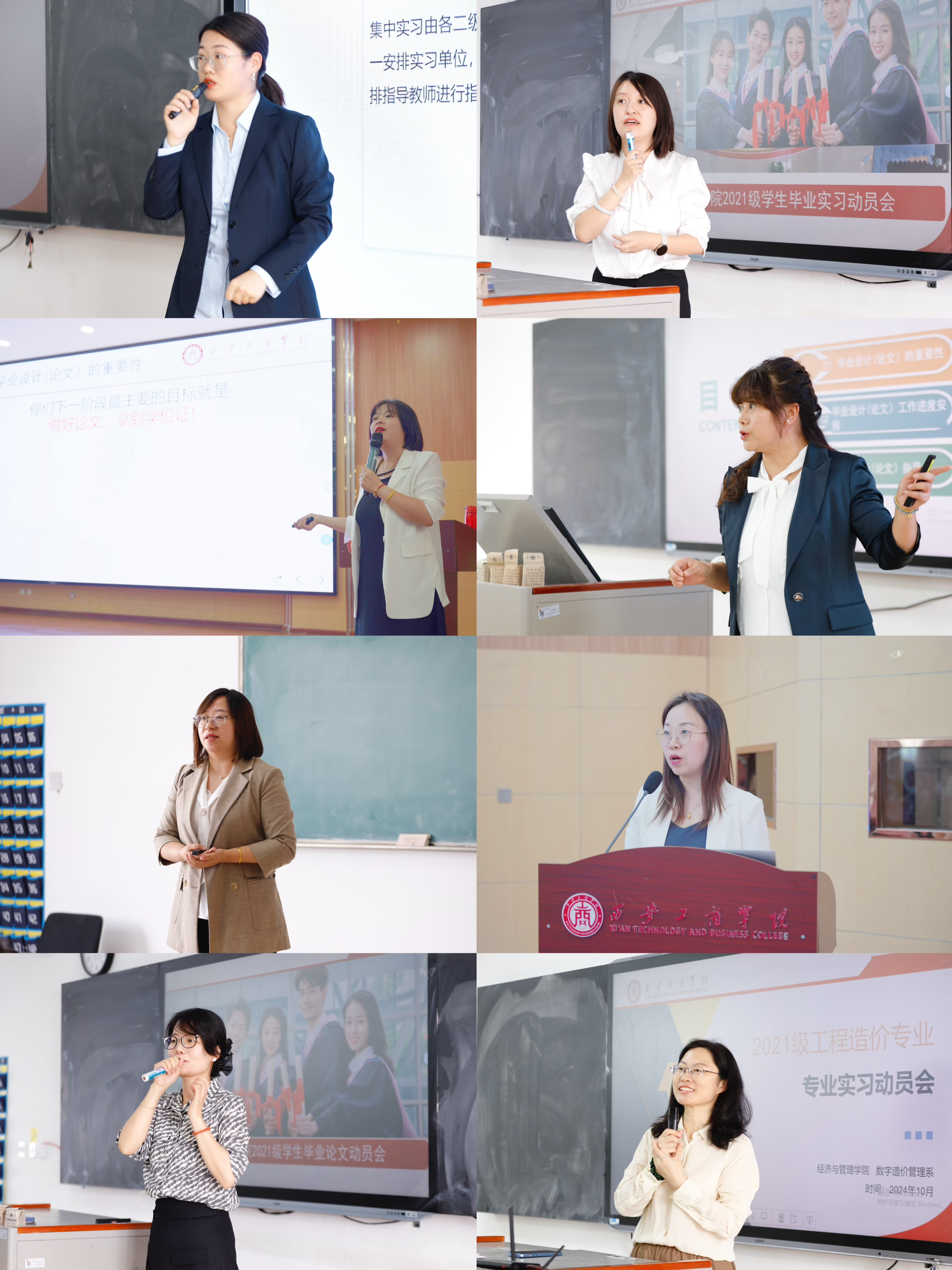 为全力保障毕业生能够高质量地完成毕业实习、毕业论文,并顺利过渡到职业生涯, 2024年10月16日,经济与管理学院2025届毕业实习、毕业论文及就业工作联动会议分五个场次,分别在报告厅、教一楼多个阶梯教室顺利召开。经济与管理学院专家王军生、执行院长张雪鹏、党总支书记李会萍、院长助理郭鹏、系主任、毕业班辅导员、骨干教师及人力资源管理、财务管理、会计学、工程造价、金融科技5个专业900余名毕业生参会。